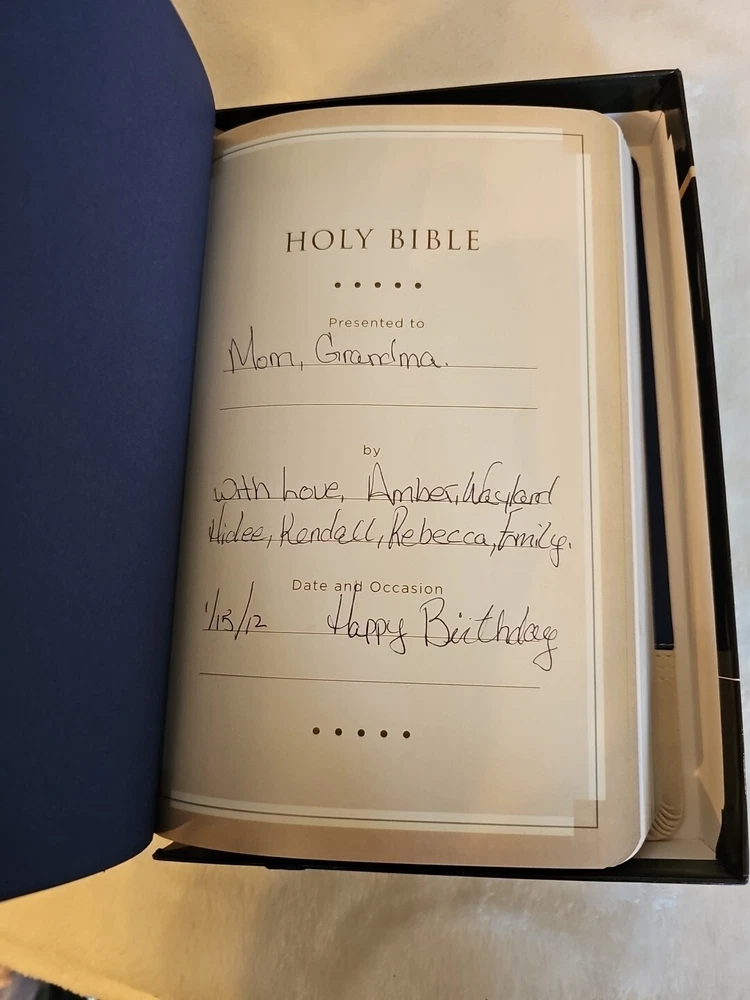 Giant Print Reference Bible NKJV Sapphire Blue Cream Leathersoft LNIB Inscribed Please see photos as they are part of the description.