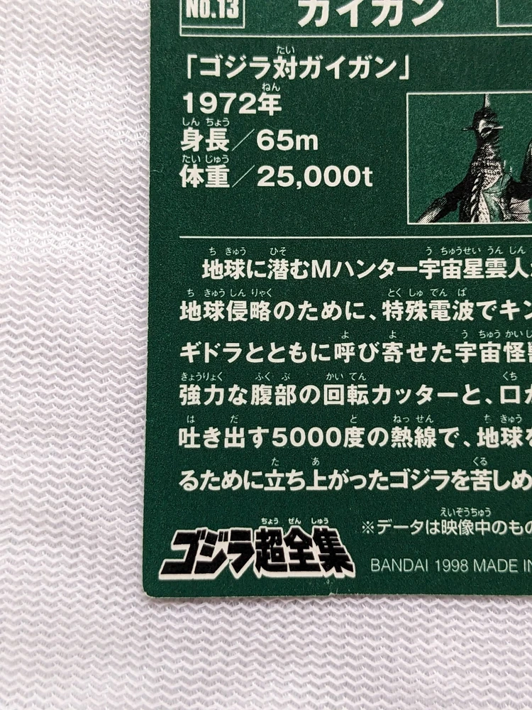 Bandai Mini Card Gigan vs Godzilla 2.8x2.0 No.13 1998 Toho Toei Japanese Collectible