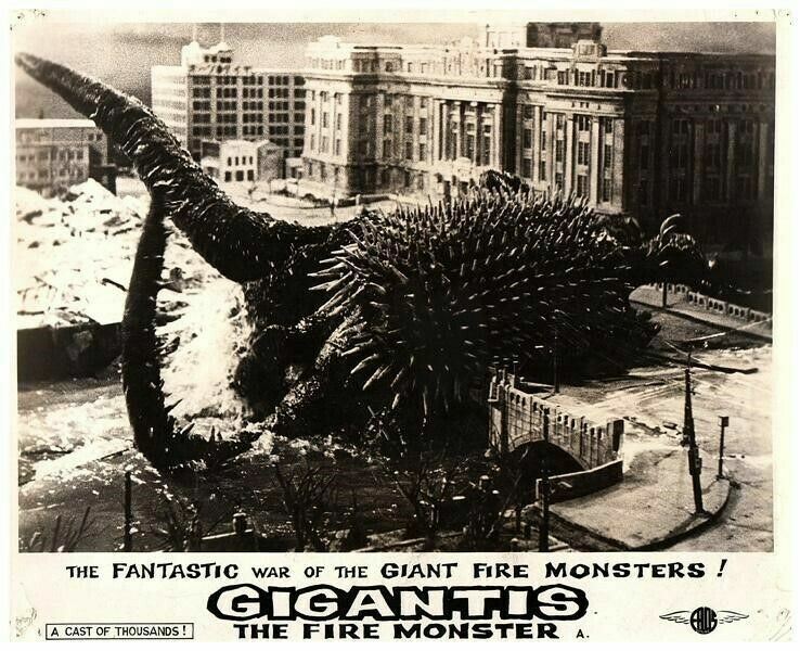Gigantis The Fire Monster Original Lobby Card aka Godzilla Raids Again Hiroshi Koizumi, Setsuko Wakayama, Minoru Chiaki 1955 VG Condition Silver Screen Archives are pleased to be able to offer this authentic original Lobby Card measuring 8x10 inches. This lobby card is from Great Britain and was printed during the actual year the film was released in movie theaters. The lobby card (also known as Front of House/ FOH card in the UK) was created by the film studios to publicize the movie and was intended for display outside the movie theatre in special glass display boxes. These are NOT reproductions! You are looking at a truly original piece of cinema art, a genuine collector's item. We have a huge archive of over 250,000 original lobby cards, mostly from the 1930's to the 1980's. We will be releasing many more rare gems from our vast collection, which will include lobby cards, original photographs, movie stills, magazines, brochures negatives, transparencies, slides and other collectible items of movie memorabilia. Powered by SixBit's eCommerce Solution Listing and template services provided by inkFrog