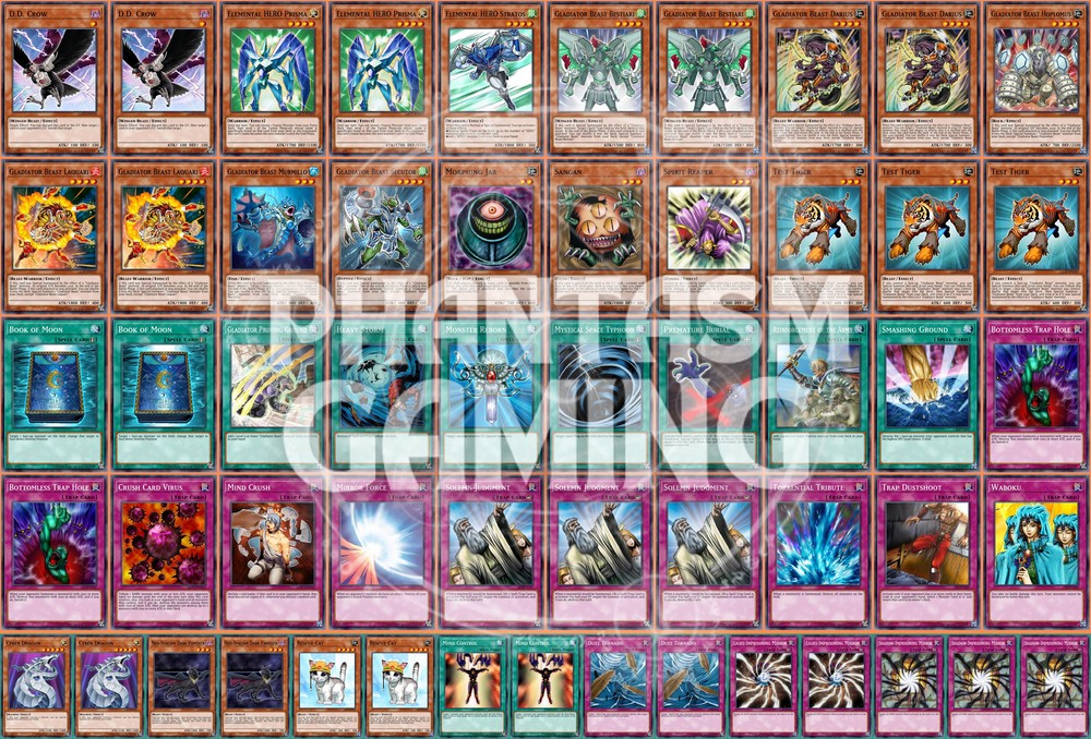 Deck Name: Gladiator Beasts (A) (Gladiator) # Main Deck (40) 2 - D.D. Crow 2 - Elemental HERO Prisma 1 - Elemental HERO Stratos 2 - Gladiator Beast Bestiari 2 - Gladiator Beast Darius 1 - Gladiator Beast Hoplomus 2 - Gladiator Beast Laquari 1 - Gladiator Beast Murmillo 1 - Gladiator Beast Secutor 1 - Morphing Jar 1 - Sangan 1 - Spirit Reaper 3 - Test Tiger 2 - Book of Moon 1 - Gladiator Proving Ground 1 - Heavy Storm 1 - Monster Reborn 1 - Mystical Space Typhoon 1 - Premature Burial 1 - Reinforcement of the Army 1 - Smashing Ground 2 - Bottomless Trap Hole 1 - Crush Card Virus 1 - Mind Crush 1 - Mirror Force 3 - Solemn Judgment 1 - Torrential Tribute 1 - Trap Dustshoot 1 - Waboku # Side Deck (15) 2 - Cyber Dragon 2 - Neo-Spacian Dark Panther 2 - Rescue Cat 2 - Mind Control 2 - Dust Tornado 2 - Light-Imprisoning Mirror 3 - Shadow-Imprisoning Mirror You will receive all of the following cards listed above. Most cards will will be in near mint condition. In the case of certain older cards we will do our best but some cards may be light or even moderatly played in extreme condtions. Those conditions being the card has not been reprinted in a number of years and con no longer be easily purchased in light or near mint condition. Set, Rarity, and Edition will vary and cannot be special requested. These lists are constructed with least expensive rarities we have available in stock. All cards are play legal copies. Note: If purchasing a Yugioh Deck all Speed duel cards are 100% legal at all levels of play. Store Policies Here at PMG_LLC , we pride ourselves on having the best customer service around. If you have any questions or can't seem to find something that you want please do not hesitate to contact us. We will do our best to respond to all questions within one business day. Hours of Operation: Monday-Friday: 2:30pm - 10:00pm Saturday- 10:00am - 8:00pm Sunday 11:00am - 5:30pm Note: We are closed all national holidays. Info: Thank you for choosing PMG_LLC . We appreciate your business. We ship Monday through Friday to make sure you get your deck as quickly as possible. All orders priority orders can use combined shipping. In order to use the combined shipping your whole purchase needs to be checked out as one order. We ship once we have received your payment and payment has cleared. As always if you have any questions or concerns please feel free to contact us via email. Shipping Information: We ship Monday through Friday, barring national holidays during which the United States Postal Service is closed. If you purchase a card on Friday or Saturday please bear in mind it will not ship until Monday. US Shipping: First Class Mail : Free. Comes with tracking information. Priority Mail with Delivery Confirmation : $9.99 All orders are shipped in appropriate protective material inside bubble mailers. International Shipping: We do not offer international Shipping Return Policy: You must return items sold and fulfilled by PMG_LLC within 30 days of delivery to be eligible for a refund. Returns which are damaged in the mail due to improper return packaging will receive partial refunds. We will process a full refund for all items returned in their original condition. In order for us to process your full refund you must include the full name associated with the order as well as the eBay order number inside the return packaging. We will not process returns which do not include the buyer's name and order number. Requirements: Please return items with the original plastic packaging. Failure to do so may result in a partial refund. Also you must inform us of any returns you may wish to process before sending them back. Any items simply send back to us without prior contact will not be eligible for refunds. Important Notes Remember that to benefit from our domestic combined shipping on priority orders you must to pay in a single payment. If you place two separate priority orders you will be charged the $7.50 shipping fee for both orders. If you place multiple orders for Priority shipping you will be charged the corresponding shipping costs for each order, even if you place the orders on the same day. We do not refund shipping costs as we tend to package orders throughout the day and may not notice that you would otherwise have qualified for combined shipping. We want to provide you with 5 Star service and earn your Positive Feedback, so if for any reason you are not happy with your transaction, contact us before leaving feedback. Business Day - Our business day runs from Monday to Friday from 9am to 4pm, excluding US national holidays. Any orders placed or payments cleared less than 4 hours before the close of business will be considered orders from the following business day.