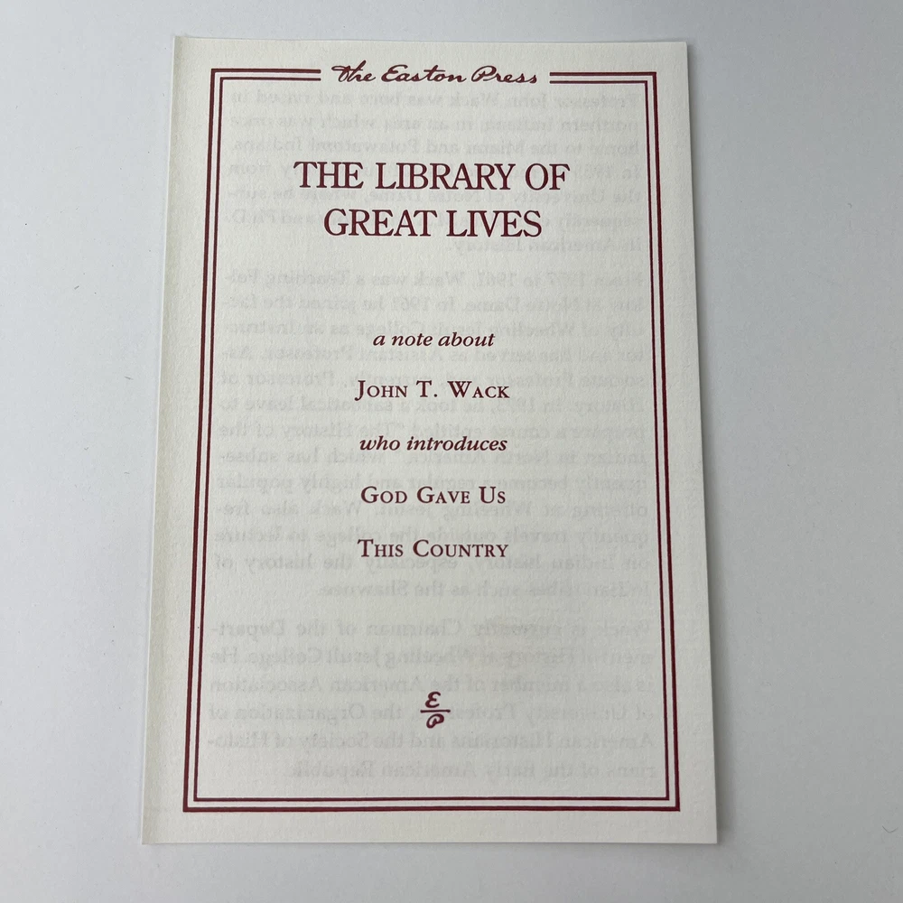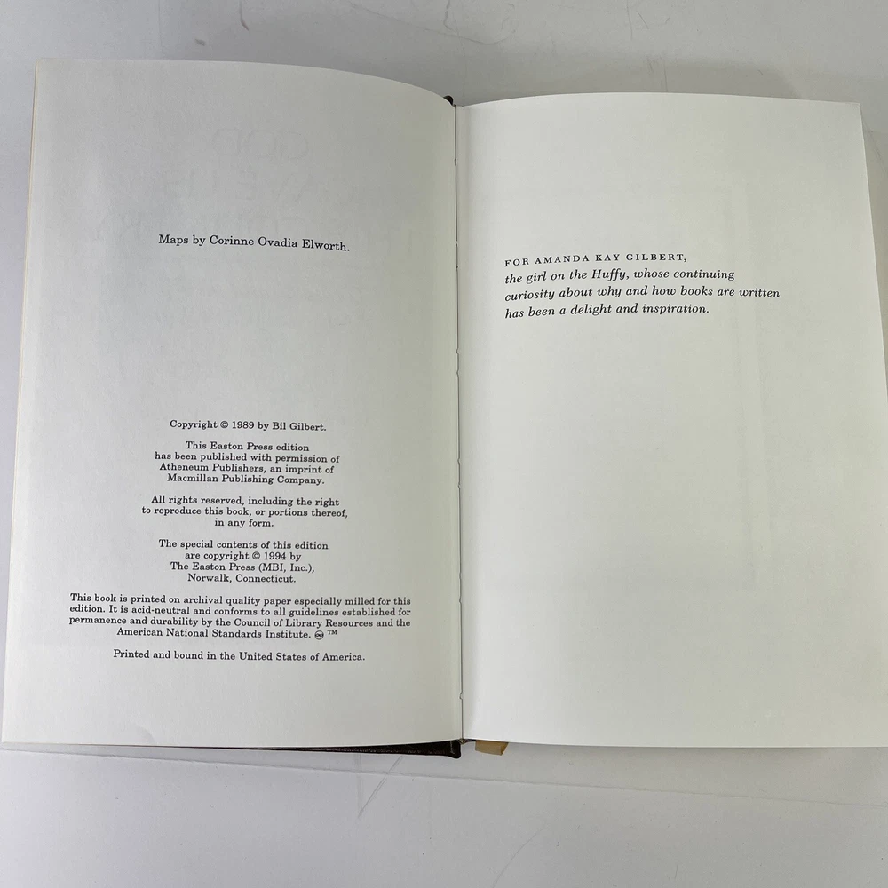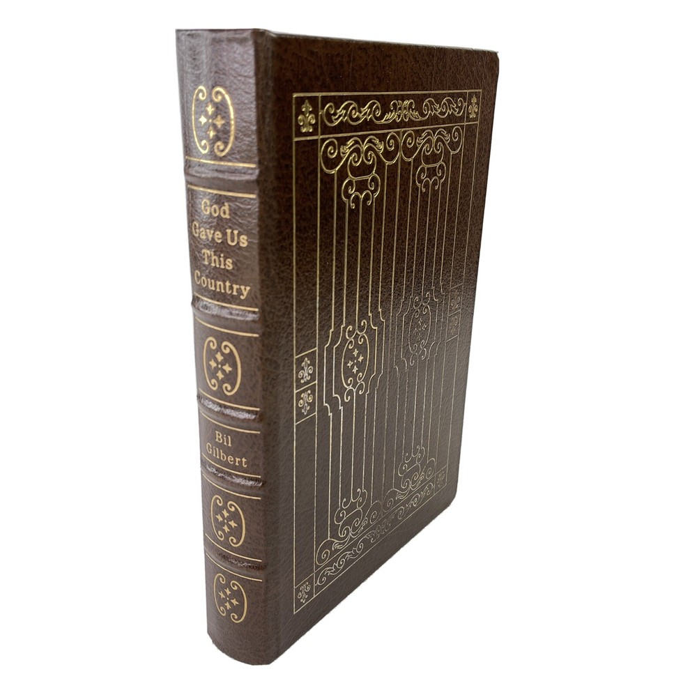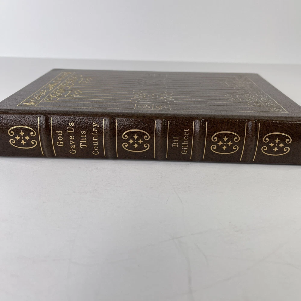 God Gave Us This Country by Bil Gilbert Easton Press 1989 Leather Bound Top grade, gold embossed/ornamented leather. Gilded page ends to protect against dust and moisture. Acid neutral archival paper to last generations. Satin ribbon bookmark. Book has a bookplate with previous owners name. There are dates wrote in ink on one of the back index pages (pic# 12), otherwise, excellent condition.....clean pages, binding intact and tight. Please message me if you have any questions!