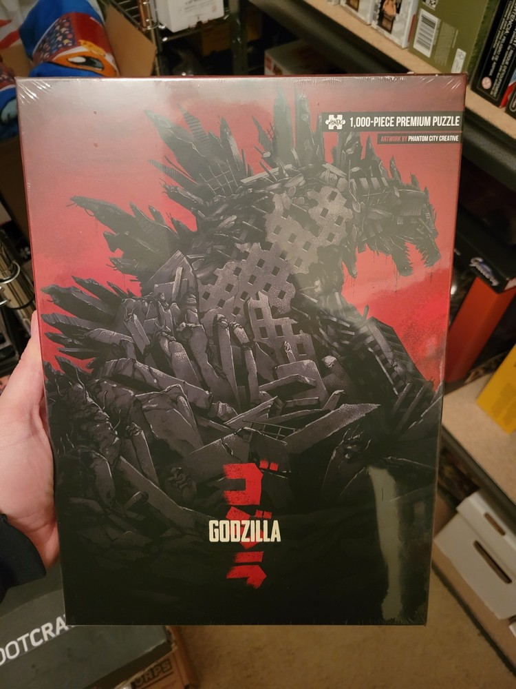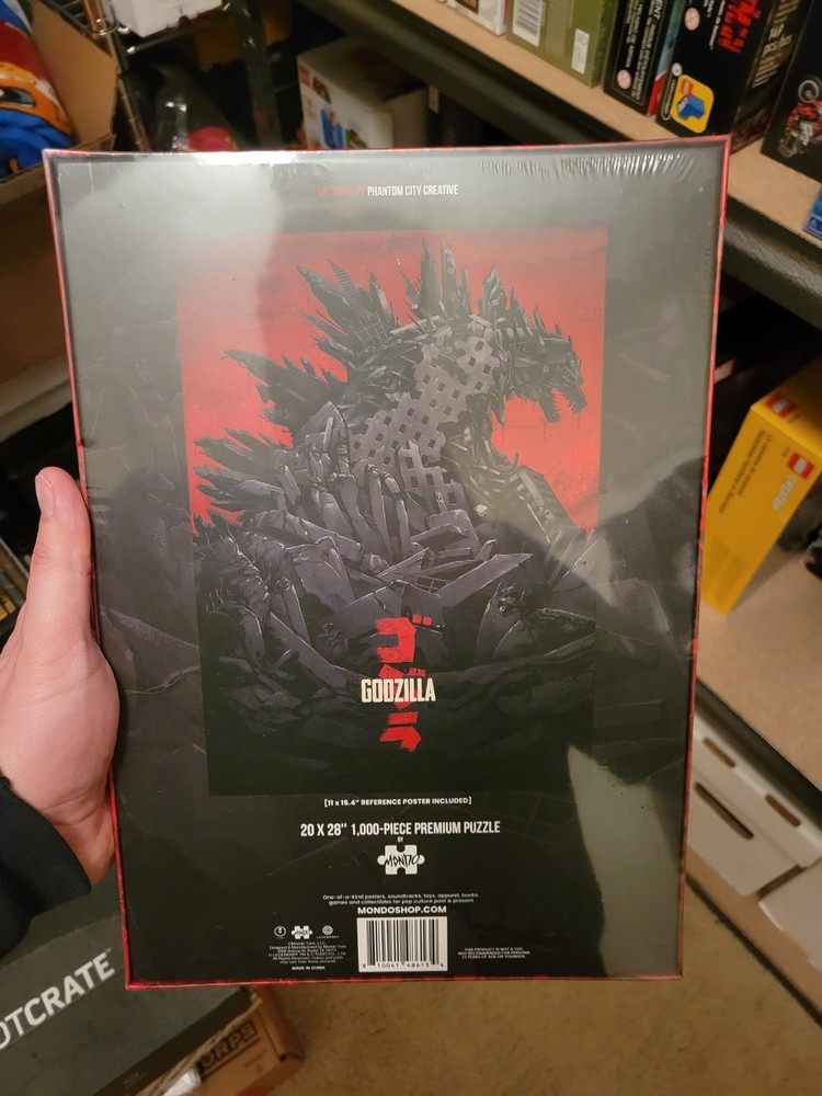 The product is a 1000-piece puzzle featuring artwork inspired by Godzilla and created by Phantom City Creative for Mondo. The puzzle showcases a poster art design in black, red, gray, and white colors, made of cardboard material. It belongs to the Godzilla character family and is perfect for fans of the iconic monster. This puzzle offers a challenging and engaging activity for those who enjoy both art and puzzles, providing a unique and entertaining way to appreciate the Godzilla franchise.