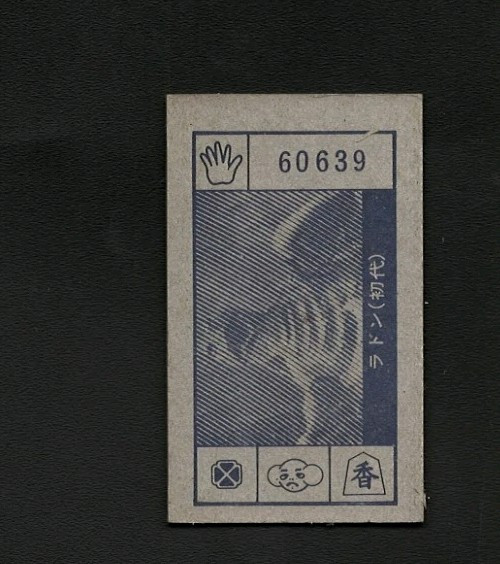 Godzilla Menko Battle Card Japanese. Vintage. Japan. Godzilla #60639. Very Rare 1960s Japanese issue. Cards are Tobacco size and 1/16" thick...