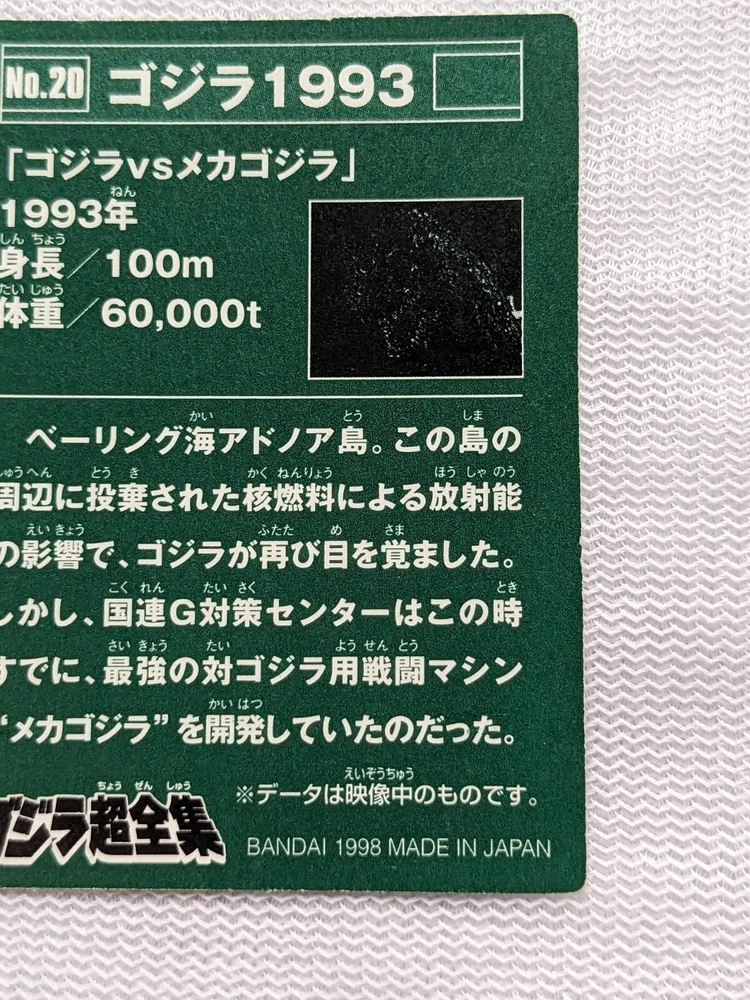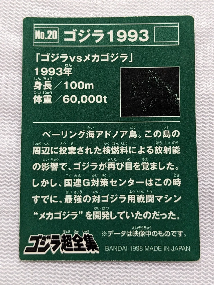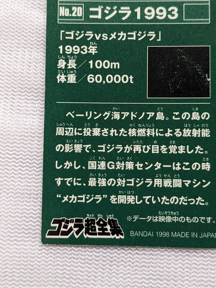 1993 Toho Godzilla Bandai Mini Card No.20 2.8x2.0 1995 Toei Retro Japanese