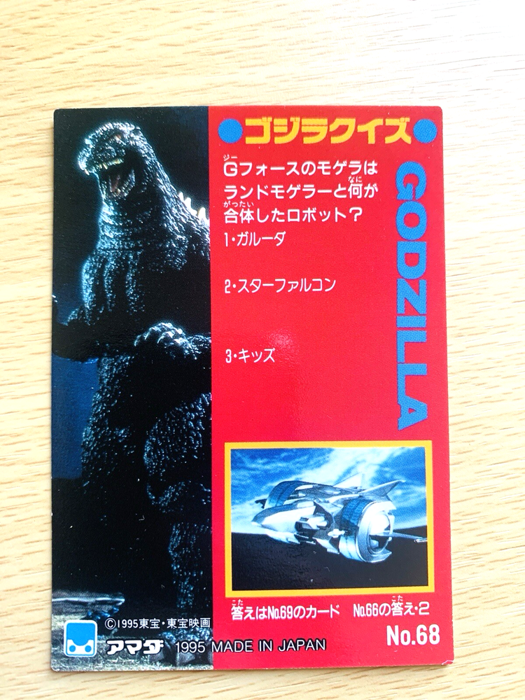 Vintage 1995 Godzilla Card No.68 TOHO Japan C-85 Collectible