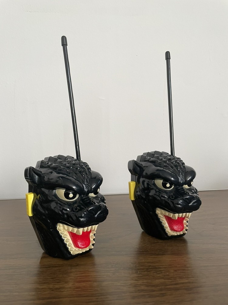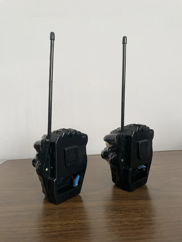 Walkie talkies in decent USED condition, missing back cover are UNTESTED! I’m 99% positive back covers from their other cheaper releases will fit these, would look great with yellow or red covers even...
