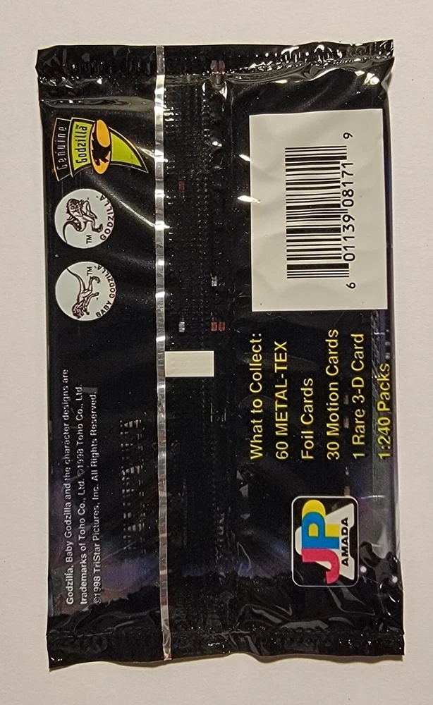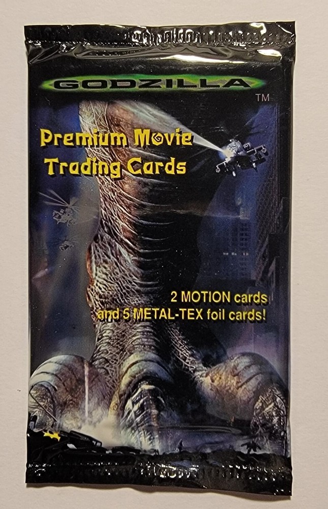 This Godzilla 1998 Movie One 1 Premium Trading Card Pack features Metal-Tex Foil Cards and is still factory sealed. The pack contains 7 standard-sized non-sport trading cards featuring the iconic Godzilla character. The cards showcase motion and are made of metal material, making them a unique addition to any Godzilla or non-sport trading card collection. The JPP Amada manufactured cards were made in the United States in 1998 and are perfect for fans of the Godzilla franchise and TV show. The pack configuration is a single pack and is suitable for ages 4+. The cards are in English language and are not autographed. Get your hands on this rare collectible pack today!