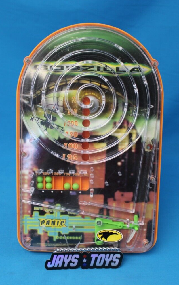 This listing is for a Godzilla 1998 Panic Ball Game S.R.M. Entertainment Item is in used and good condition, electronics and pinball function tested and work as of this listing. Battery compartment has light corrosion at terminals, no batteries included with this item. See photos for further details on condition. Item shown is exactly what you will receive. Comes as you see it here. See photo(s). 3Ea ------------------------------------------------------------------------------ Shipping within the US will be calculated based on buyer's location. International bidders are welcome, the shipping that Ebay estimates for you will be the correct amount due. We have no control over GSP sent invoices . International buyers take responsibility for any customs/duty fees . We only declare the actual value of the items to customs. We do combined shipping based on weight and final value - please message us with any questions. Items described are actual items pictured and are guaranteed to be as such. Any questions, please ask. We accept returns on all items. Please contact us before using the eBay Hassle-Free Return system to discuss your concerns, as sometimes we can come to an agreement without you needing to complete a return. 06/23 A.M. ED 01/21/2024 AP