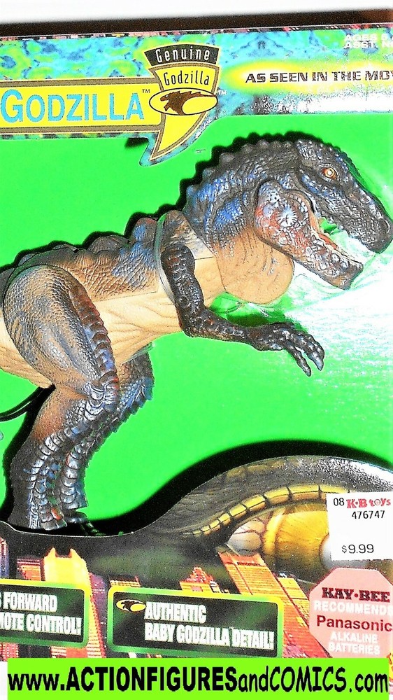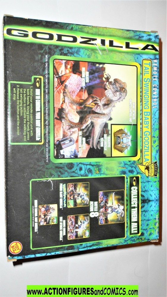 All items sold by ACTIONFIGURESandCOMICS are 100% Guaranteed and returns are accepted for any reason. Toy Biz GODZILLA 1998 8 inch TAIL SWINGING BABY GODZILLA NEW - still factory sealed in the original package Condition : overall great condition box. some minor shelf wear. Figure size: 10.5 inch long / 7 inch tall Package size : 11 inch x 8 inch x 4 inch CLICK HERE for several other figures and SAVE on Shipping Costs! Combined shipping costs for the USA: 15.95 Priority mail shipping costs to All other destinations 49.95 airmail