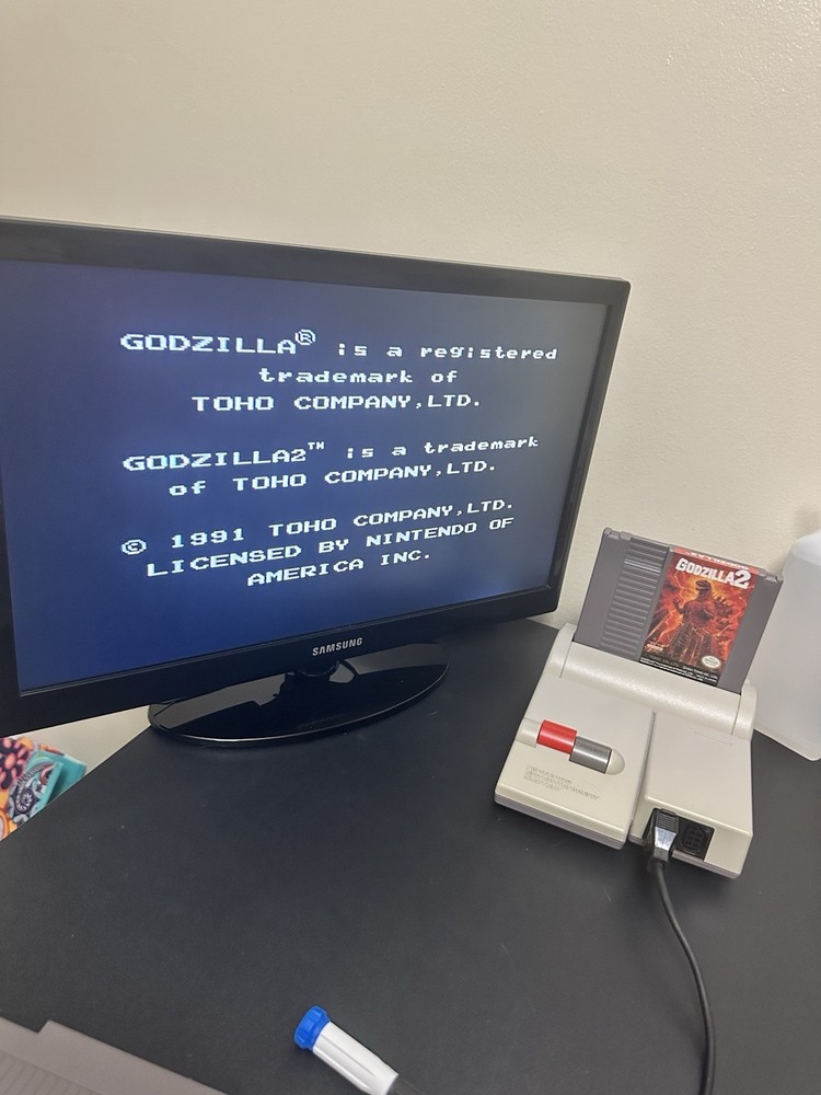 The product is a video game version of Godzilla for the Nintendo NES gaming system. Players can expect to take on the role of Godzilla and engage in various gameplay mechanics and levels set within the iconic monster's world. With the classic NES platform, players can enjoy simple yet challenging gameplay, all while battling against different enemies and exploring the game's unique storyline. This version of Godzilla for the NES offers a nostalgic gaming experience for fans of both the classic NES platform and the legendary monster.