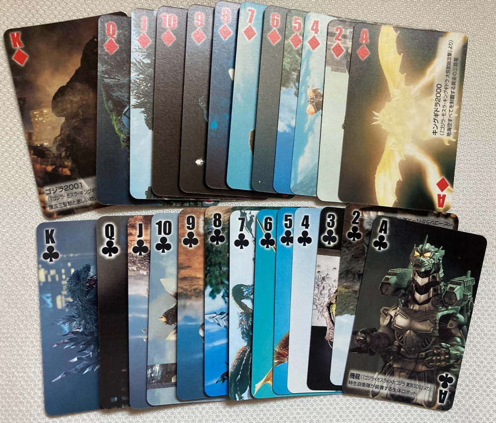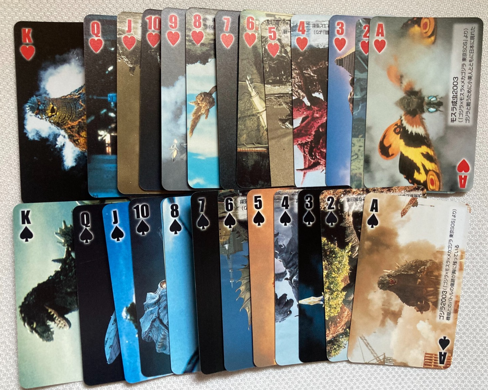 π¦ Godzilla Final Wars Playing Cards β 50th Anniversary Promo β Theater Bonus β Japan Exclusive Release 2004 β 50th Anniversary Movie Promo Item Condition Good condition. Complete set of 54 cards with the original paper case. Both the case and cards show some wear from age, but still great for any Godzilla fan or collector. Card Size Approx. 6.8 Γ 4.3 cm (2.68 Γ 1.69 inches) Note: These are smaller than standard playing cards. Language Japanese Special Features πΉ Distributed as a bonus with advance tickets for the film βGodzilla: Final Warsβ πΉ Features a wide variety of Godzilla and other kaiju characters πΉ Not for sale in stores β limited theater-only release πΉ A rare 50th anniversary collectorβs item Shipping π© Economy Shipping: Free (11β23 business days, no tracking) π Standard Shipping: $3.00 (with tracking) π Expedited Shipping: $22.00 (1β4 business days, tracked) Packed carefully to avoid bending or damage Returns 60-day return policy. Buyer pays return shipping for personal reasons. International Buyers Import duties and taxes are not included in the item price or shipping cost. Please check with your country's customs office before purchasing. π° Buy More & Save! π° Get a $3 discount per additional item when purchasing multiple paper-based items. Please message me before checkout for the discount. Questions welcome anytime. Thanks for looking!