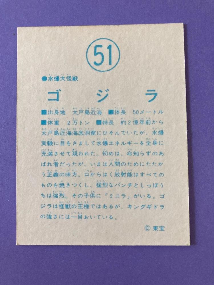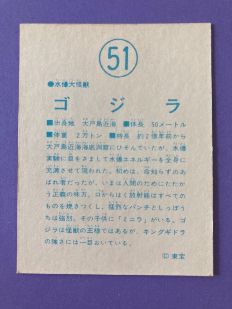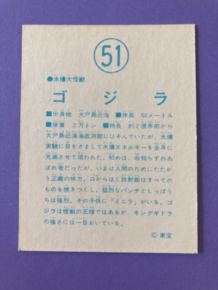 Godzilla 51 Giant Reptilian Monster Vintage TOHO Japanese Retro Trading Card