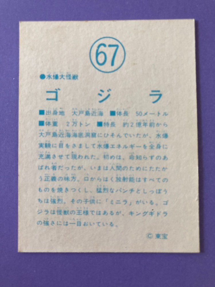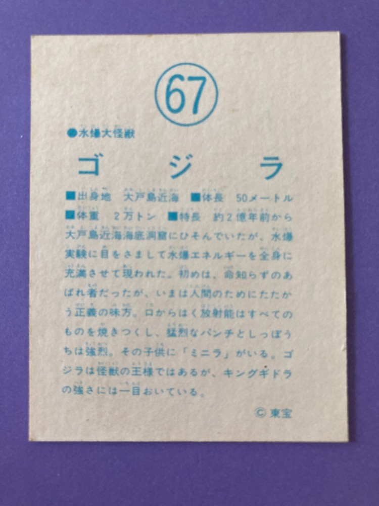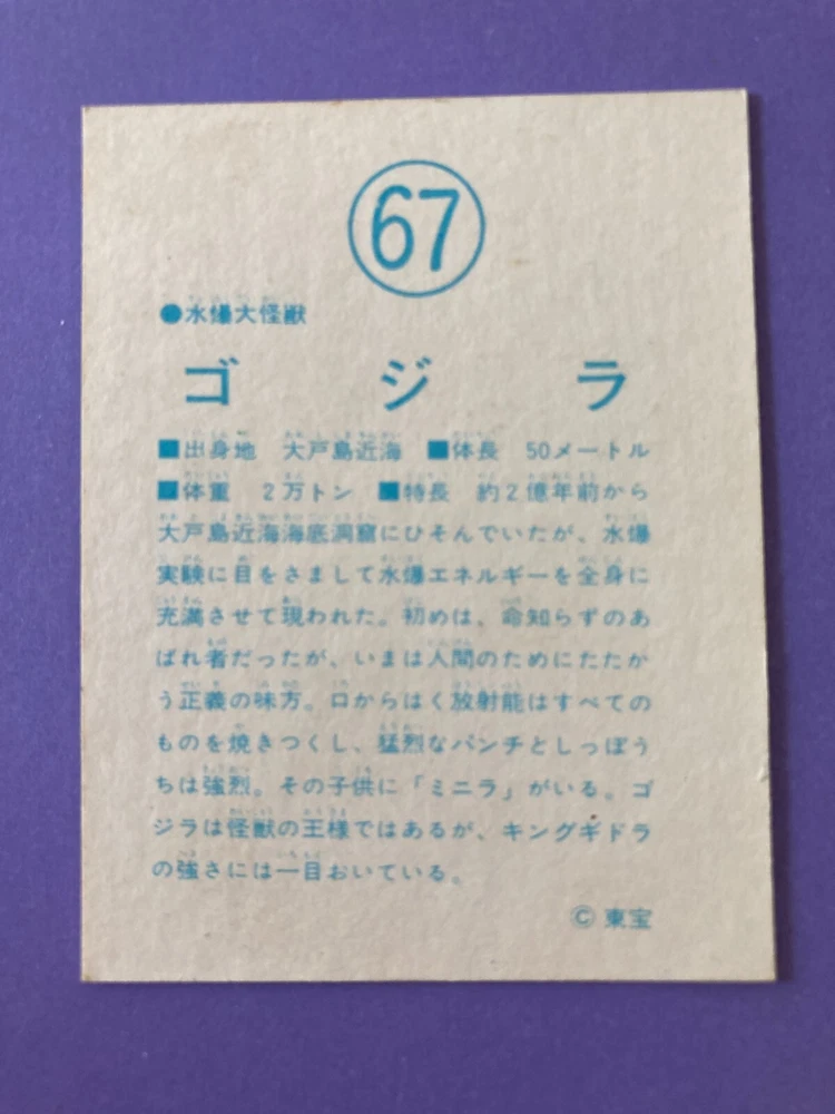Vintage TOHO Godzilla 67 Large Monster Card Retro Morinaga Japanese Collectible