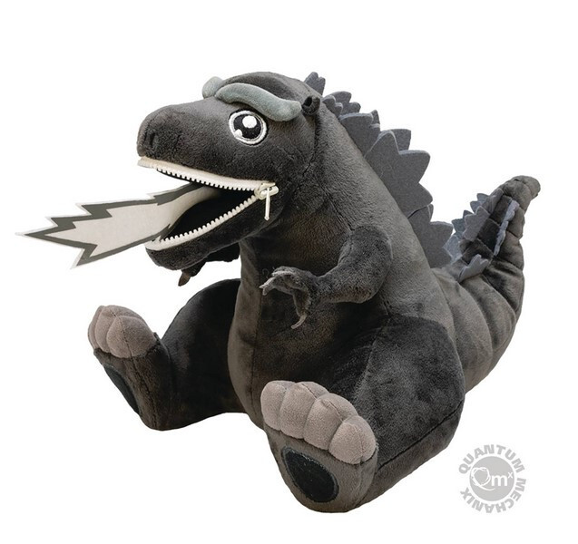 From Quantum Mechanix. A PREVIEWS Exclusive! While Godzilla was originally depicted as dark gray or black in color, one of his most common forms is as a big green baddie: monstrous, mean, and ready to destroy anything in his path! This Godzilla PREVIEWS Exclusive Zippermouth Plush appears of a more reptilian persuasion, but don't let first impressions fool you. Sitting 9" tall, he is one fearsome character. When unzipped, his mouth reveals a large red heat ray and a presumably equally large appetite. His bright green body, pointy gray dorsal fins covering his back, fierce felt claws, and serious brow are all part of what comes together to elevate this plush to collectible status. ZIPPERMOUTH PLUSH: Charming, edgy and packed with personality, Zippermouth are soft, cute, and full of details that will appeal to even the most discerning adult collector. HUGGABLE SIZE: Plush measures approximately 9 inches tall - the perfect size to cuddle and collect! SOFT & EXPRESSIVE: The Godzilla Zippermouth features individually stuffed claws, embroidered details of his eyes, nose and spine (Zippermouth never use print detailing), and custom-dyed fabric that's super soft to the touch. ZIPPER SMILE: All Zippermouth feature their trademark zippered smile: Just unzip to reveal Godzilla's destructive grin.