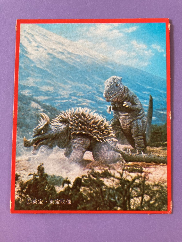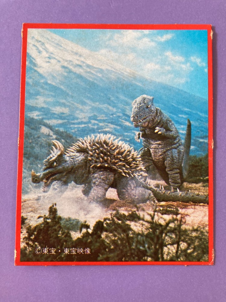 Godzilla and Anguirus 81 Large Monster Card TOHO Retro Japanese Vintage Morinaga Collectible