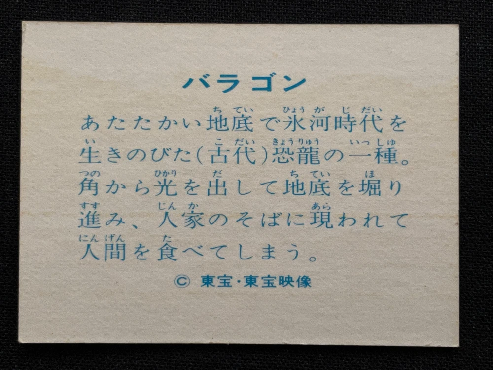 Vintage Godzilla Baragon Mini Card TOHO TOEI Menko 2.6x1.9 Rare Collectible