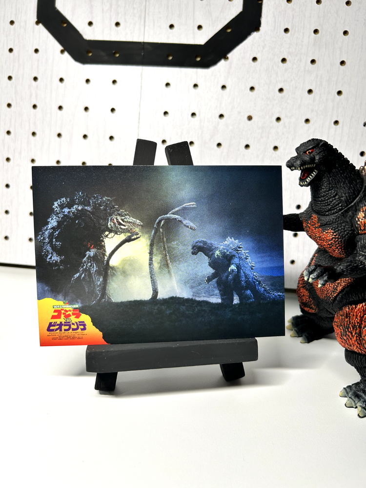 This postcard features the iconic Godzilla Biollante, created in Japan in 1989. The postcard showcases a fight scene, making it a perfect addition to any collection that focuses on the theme of battle. The subject of the postcard is Godzilla, a beloved character in the world of non-topographical postcards. This collectible item is a must-have for any postcard enthusiast or Godzilla fan. It was manufactured in Japan, adding to its unique and authentic appeal. This postcard is a great way to add a touch of history to your collection and showcase your love for the legendary Godzilla Biollante.