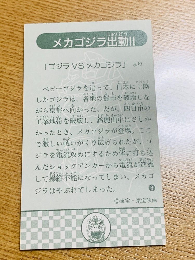 Godzilla vs MechaGodzilla Card No 8 G-62 TOHO Japan Collectible