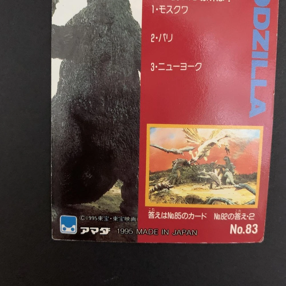 This adorable Godzilla card battling the space family is such a fun and unique collectible! The artwork is vibrant and full of personality, making it a great conversation piece. Shipping from Japan was smooth, and the seller was super responsive. Perfect for fans of quirky, nostalgic art—highly recommend adding this to your collection!