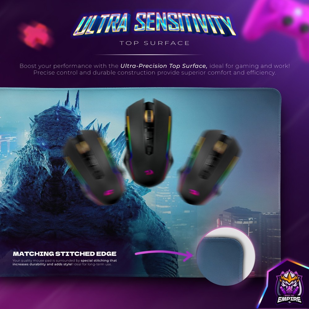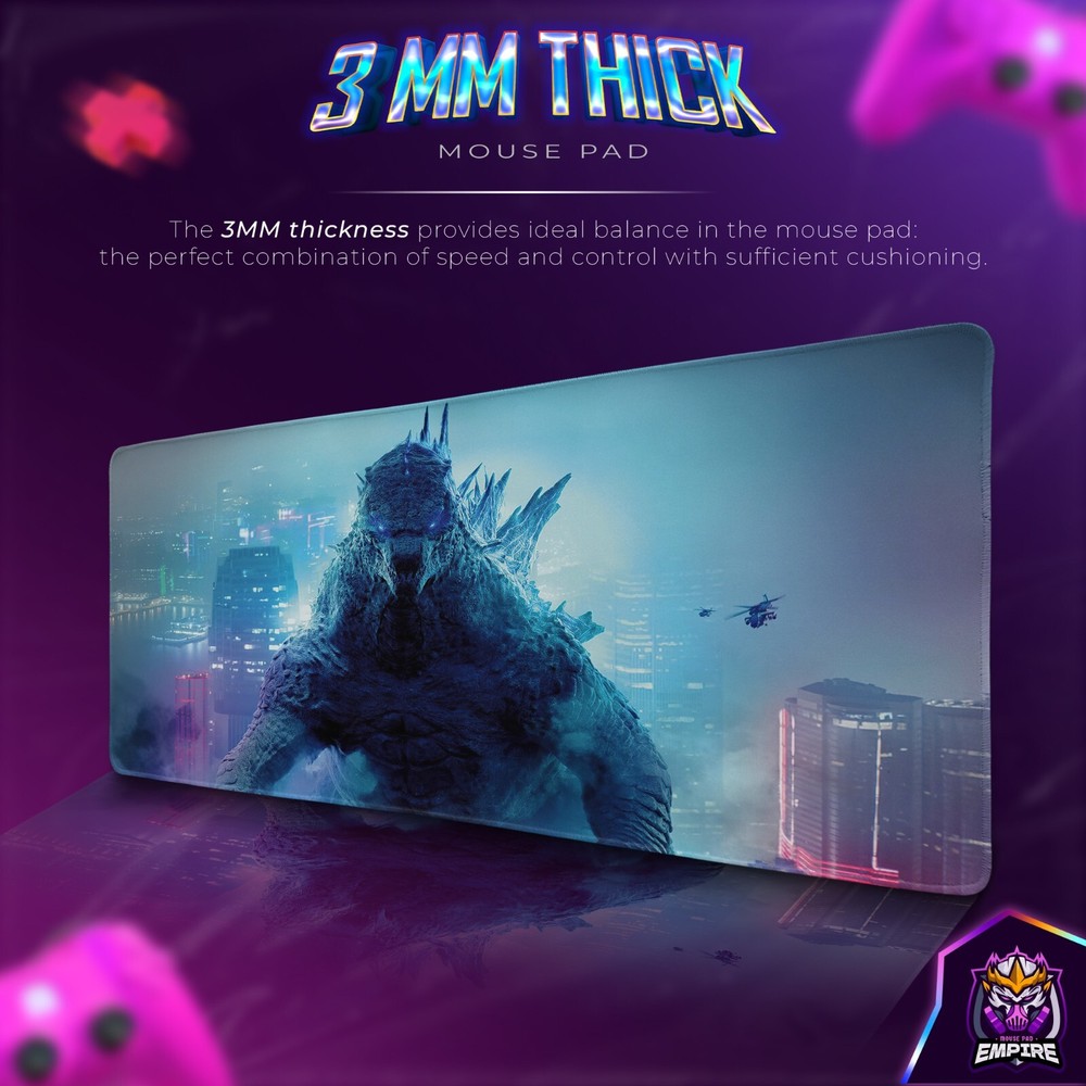 Bring the colossal power of Godzilla to your desk with this jaw-dropping desk mat, featuring the King of the Monsters amidst a vibrant cityscape. Perfect for fans of the Monsterverse and epic Kaiju battles, this gaming mouse pad is both functional and visually stunning. Dominate Your Desk with Godzilla's Might Step into the world of epic Kaiju battles as Godzilla towers over a neon-lit metropolis. This desk mat captures the cinematic grandeur of the Monsterverse, making it the ultimate centerpiece for your workspace. Key Features for Gamers and Fans Alike Epic Godzilla Design: A detailed depiction of the King of the Monsters that will impress any Monsterverse fan. Premium Surface: Smooth texture ensures precise mouse control and optimal gaming performance. 3mm Thickness for Maximum Comfort: Enjoy unparalleled wrist support and cushioning for extended sessions. Non-Slip Base: Designed to stay firmly in place, no matter the intensity of your gaming. Available Sizes for Every Setup Select the size that suits your desk: Small: 12''x16'' (30x40cm) Medium: 12''x27.5'' (30x70cm) Large: 12''x31.5'' (30x80cm) Extra Large: 16''x35.5'' (40x90cm) XXL: 23.6''x35.4'' (60x90cm) XXXL: 19.7''x39.4'' (50x100cm) XXXXL: 23.6''x47.2'' (60x120cm) The Ultimate Gift for Monsterverse Enthusiasts Whether you're a gamer, movie buff, or Godzilla fanatic, this desk mat makes a bold and thoughtful gift for any occasion. Unleash the raw power of the King of the Monsters and elevate your gaming or work experience with this epic Godzilla desk mat!