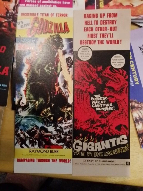 The "Godzilla Collection" consists of 8 glossy bookmarkers and a bonus set of 28 mini art cards. These items are from the United Kingdom and are part of a Sci-Fi/Fantasy genre. The lobby card set features images related to the iconic Godzilla franchise, making it a must-have for fans of the series. Additionally, the product is from the United Kingdom, adding a unique touch to this movie memorabilia.