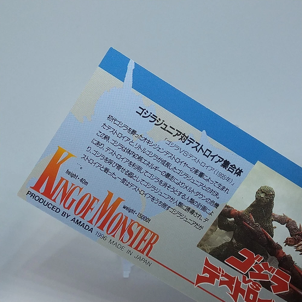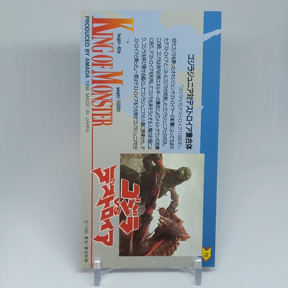 Godzilla Destoroyah King of Monster Amada Wide Collection Card No.70 1996 Description Please see the picture for the details of damages and dirt or ask us before your purchase. 100% Authentic or Money Back Guaranteed. (Do not worry you are protected by eBay and eBay Managed Payments) See the pictures for more details. If you have any question about the condition, accessories, or anything about the product, please feel free to message us. We are glad to answer all your concerns. Payment Same as ebay payment method. Shipping Economy shipping: Delivery time will be about 11 - 23 days. Standard shipping: Delivery time will be about 5 - 10 days. Expedited shipping: Delivery time will be about 1 - 4 days. Terms of Sale Money back guarantee within 30 days if returned by customer. We would not be able to accept your bid if you; 1) Don't have a PayPal account. 2) Have unpaid items reported. 3) Have a primary shipping address in countries you don't ship to. 4) Have reportedly violated eBay policies. 5) Have a Feedback score lower than the number you specify. International Buyers - Please Note: Import duties, taxes and charges are not included in the item price or shipping charges. These charges are the buyer's responsibility. Please check with your country's customs office to determine what these additional costs will be prior to bidding/buying. These charges are normally collected by the delivering freight (shipping) company or when you pick the item up - do not confuse them for additional shipping charges.