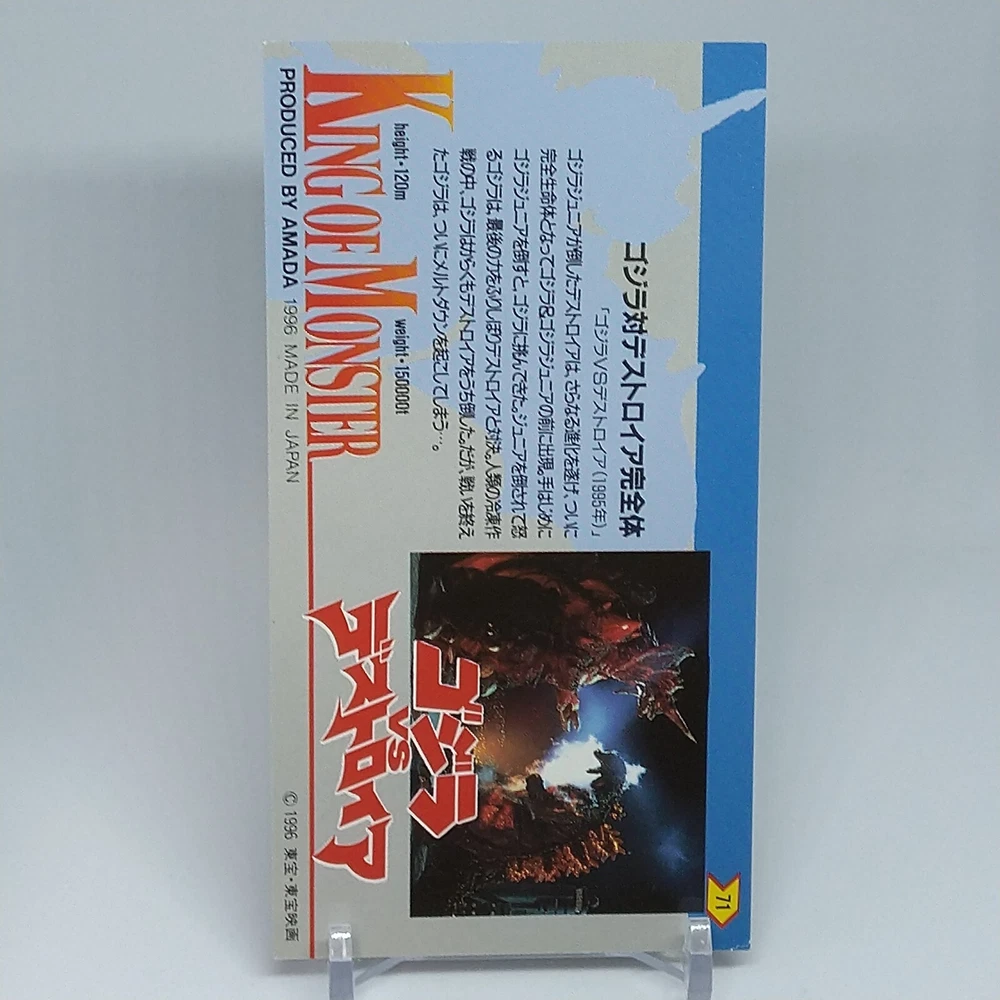 Godzilla Destoroyah King of Monster Amada Wide Collection Card No.71 1996 Description Please see the picture for the details of damages and dirt or ask us before your purchase. 100% Authentic or Money Back Guaranteed. (Do not worry you are protected by eBay and eBay Managed Payments) See the pictures for more details. If you have any question about the condition, accessories, or anything about the product, please feel free to message us. We are glad to answer all your concerns. Payment Same as ebay payment method. Shipping Economy shipping: Delivery time will be about 11 - 23 days. Standard shipping: Delivery time will be about 5 - 10 days. Expedited shipping: Delivery time will be about 1 - 4 days. Terms of Sale Money back guarantee within 30 days if returned by customer. We would not be able to accept your bid if you; 1) Don't have a PayPal account. 2) Have unpaid items reported. 3) Have a primary shipping address in countries you don't ship to. 4) Have reportedly violated eBay policies. 5) Have a Feedback score lower than the number you specify. International Buyers - Please Note: Import duties, taxes and charges are not included in the item price or shipping charges. These charges are the buyer's responsibility. Please check with your country's customs office to determine what these additional costs will be prior to bidding/buying. These charges are normally collected by the delivering freight (shipping) company or when you pick the item up - do not confuse them for additional shipping charges.