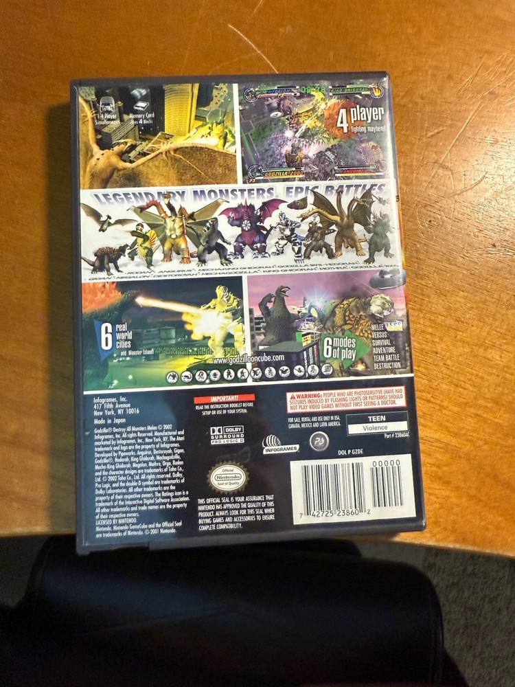 Unleash monstrous mayhem with "Godzilla: Destroy All Monsters Melee" for the Nintendo GameCube. This epic fighting game, released in 2002 by Atari, pits the King of Monsters against a raft of behemoths in intricate, action-packed battles. With a T-Teen rating, it's a thrilling experience for a slightly older audience, offering deep gameplay and engaging mechanics that fans of the genre will appreciate. Compatible with the NTSC-U/C region code for the US and Canada, this game is a must-have for collectors and gamers alike. Dive into the nostalgia of early 2000s gaming and enjoy a title that remains a classic in the fighting game pantheon. Whether you're looking to revisit cherished memories or experience the thrills for the first time, this authentic and tested game is ready to roar into your collection.