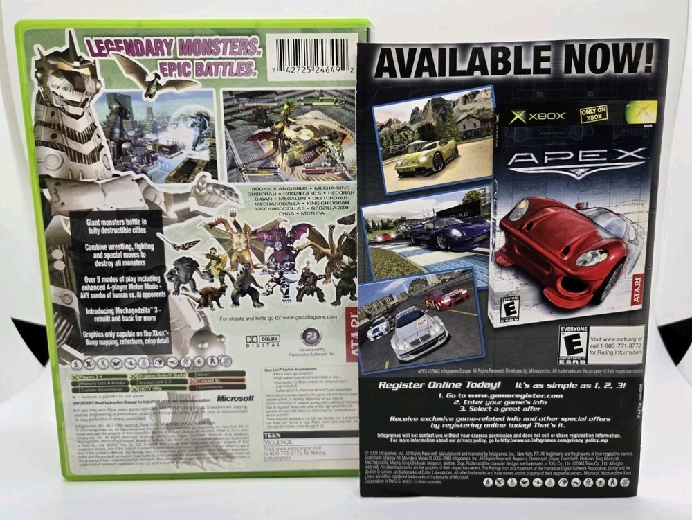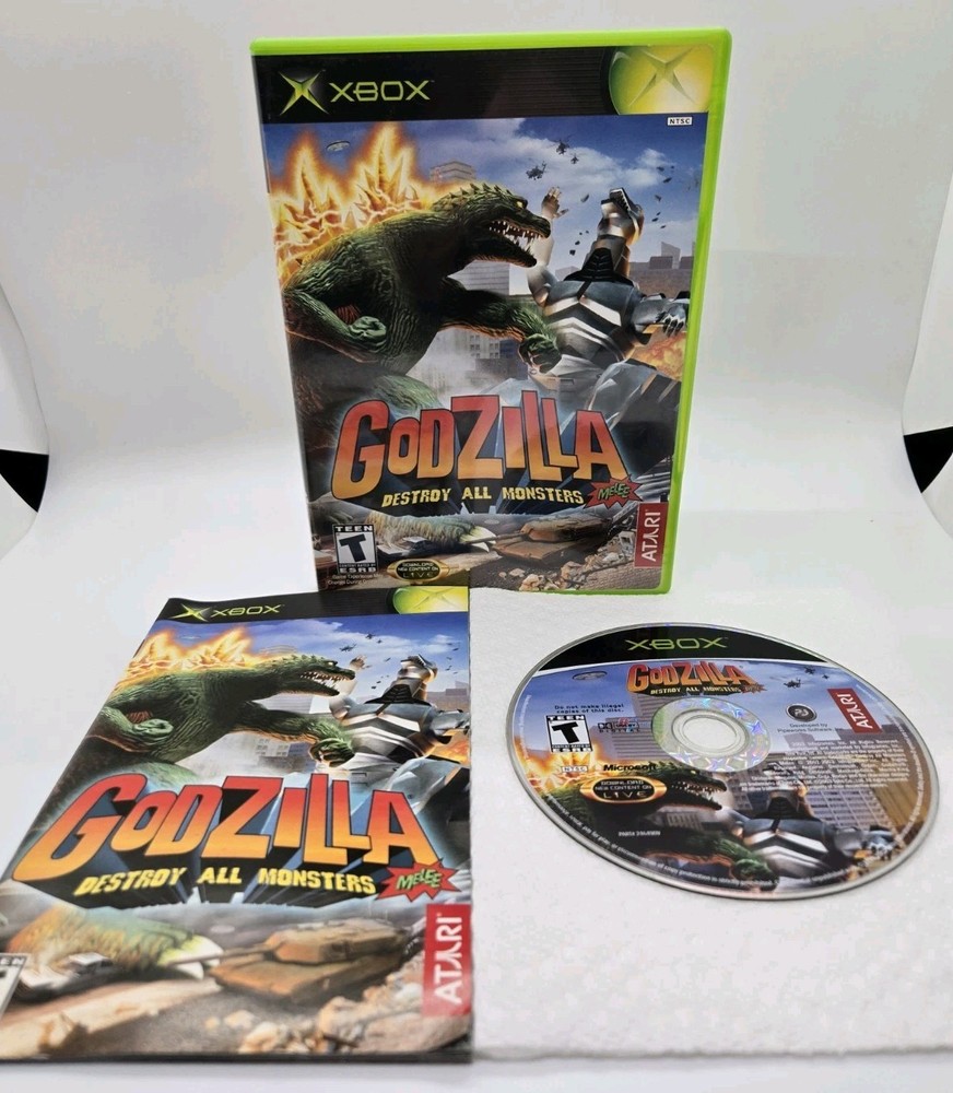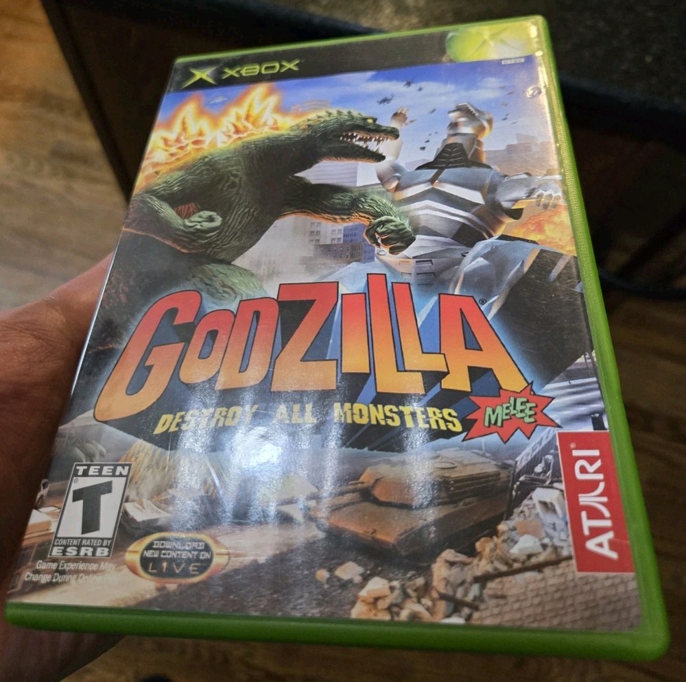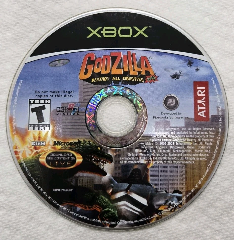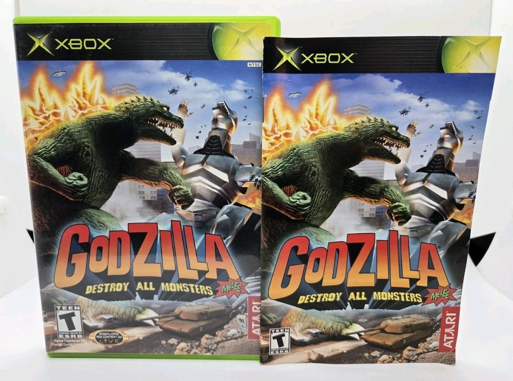 Godzilla: Destroy All Monsters Melee (Microsoft Xbox, 2003) Complete CIB Rare Comes with case, artwork, manual, and game disc Case is in good condition with normal wear Artwork is in good condition but has some humidity waviness Manual is in good condition Disc is in good condition. Has been resurfaced and has superficial swirls and light marks Any questions please ask