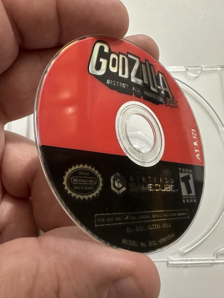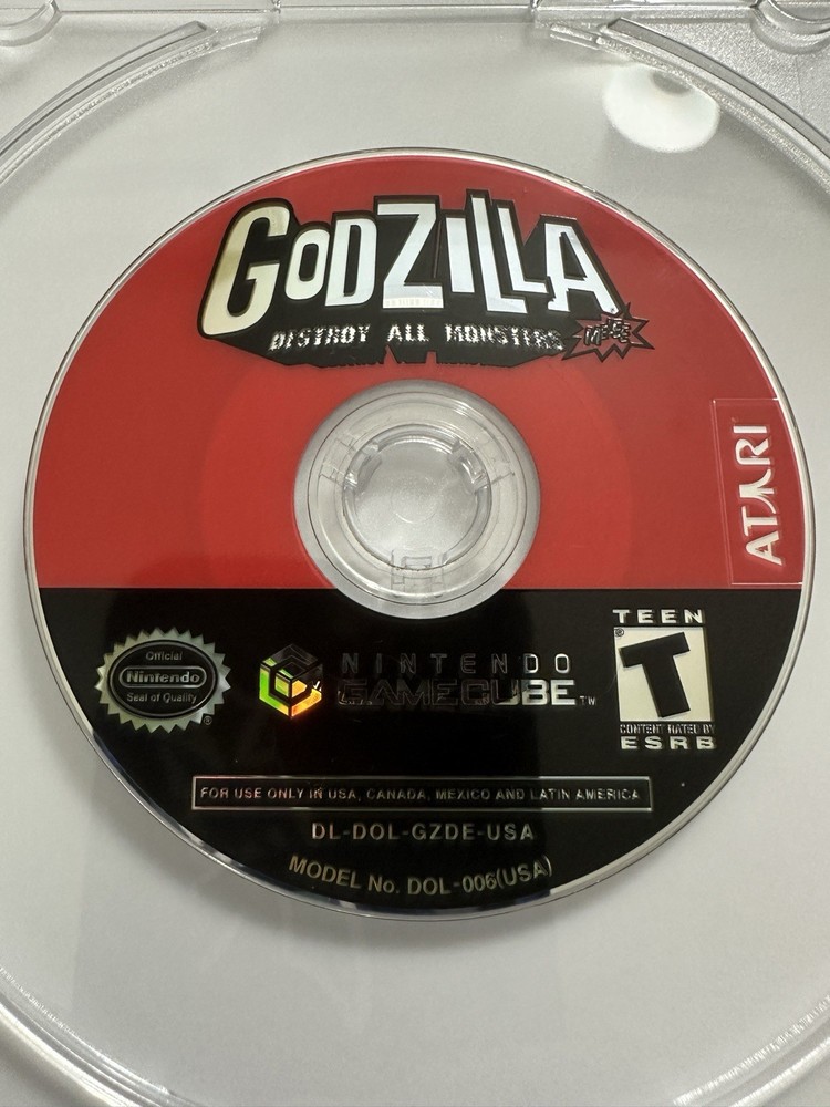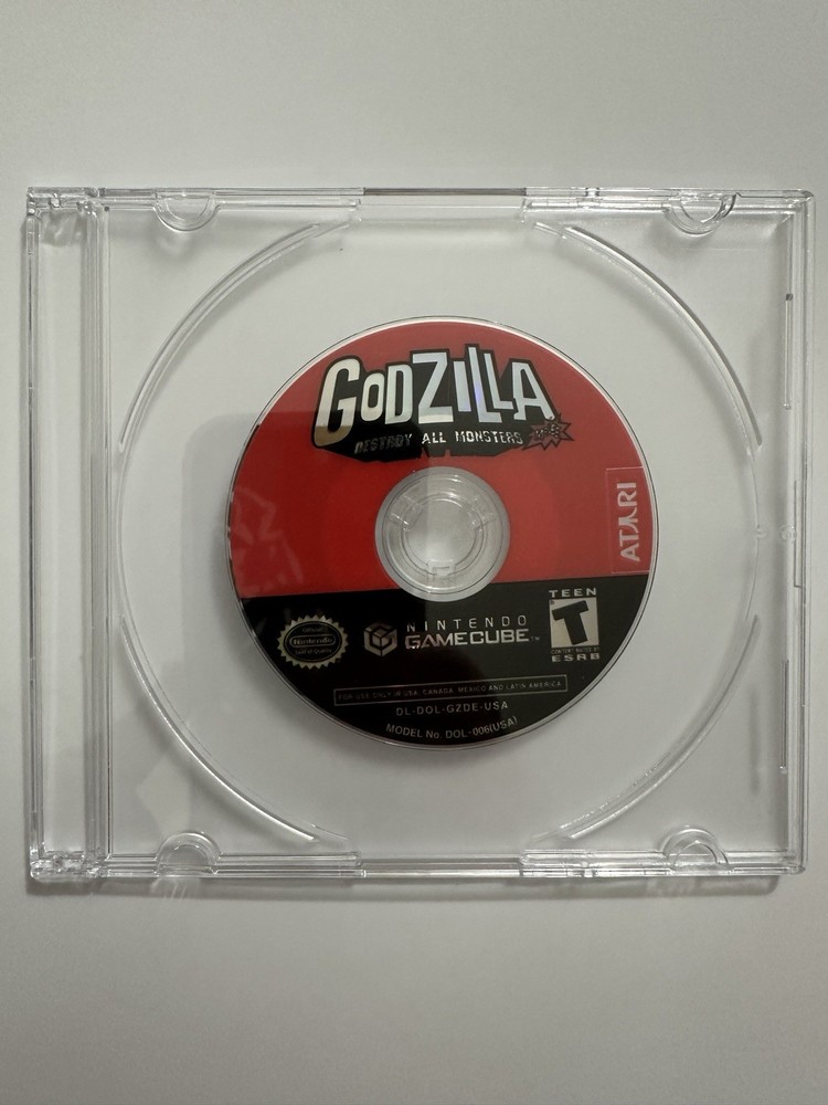 Godzilla: Destroy All Monsters Melee This is a game disc of Godzilla: Destroy All Monsters Melee for the Nintendo GameCube. This game can be played on any of the Nintendo GameCube consoles, as well as any GameCube compatible Wiis. This is a 100% authentic game of Godzilla: Destroy All Monsters Melee. This game has been tested and shown to work. This game disc will also come with a protective game case as shown in the photos. The disc art is in very good shape with very minimal signs of use/ wear, as shown in the photos. The bottom of the disc is also in very good shape with very minimal signs of use/ wear. These signs of use/ wear did not affect gameplay as the game has been shown to work and was completely playable. This game is being sold AS-IS, which means it is being sold exactly in the same condition as shown in the photographs, and is being sent in the exact same condition as shown as well. Disc based game sales are final. Photos are taken the day the listing is created and posted. GODZILLA: DESTROY ALL MONSTERS MELEE GAME DISC WITH PROTECTIVE GAME CASE ONLY.