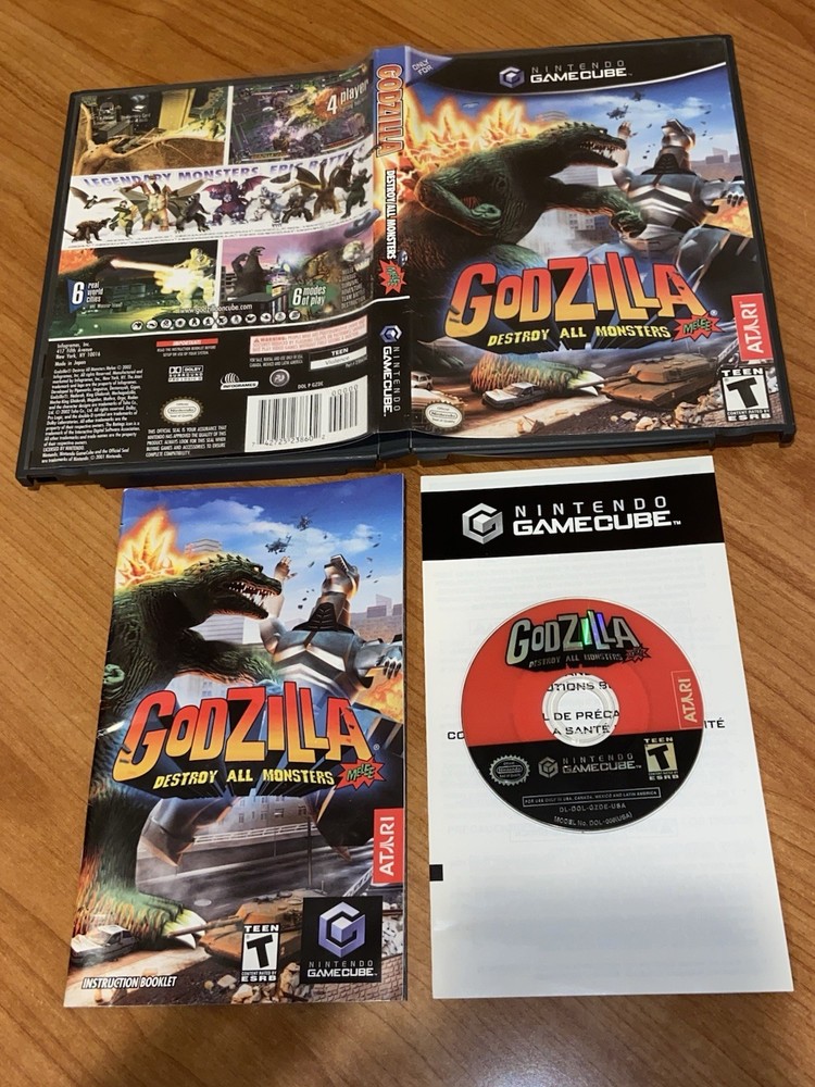 Godzilla: Destroy All Monsters Melee (Nintendo GameCube, 2002) Authentic game in GOOD CONDITION w/ MANUAL - Typical wear and tear to Disc/Case/Manual - TESTED AND WORKS GREAT! Please note what you see in the pictures represents exactly what you will receive. Shipping and Handling is Free and will be shipped out via USPS. Handling time is one business day! Item ships to the United States only! I offer free 30 Day Returns as long as you ship the item back in the condition it was sent!