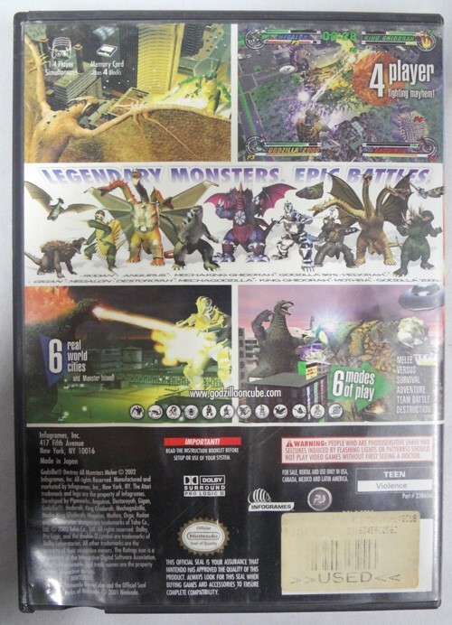 WITH OVER 24,500 POSITIVE FEEDBACK BID WITH CONFIDENCE! Godzilla Destroy All Monsters Melee Game Cube Video Game Atari! For sale is a Godzilla Destroy All Monsters Melee Game Cube Video Game Atari! This item is in overall good condition with no major cosmetic damage to either of the game case or game disc. There is a sticker on the top right corner of the game case. There are also a few minor scratches on the bottoms of the game disc, however; these scratches do not impact the functionality of the game. There is no manual, the game has been tested and is in excellent working condition. Don't miss out on this great deal! Please see photos to make your own evaluation. Thank you for viewing! The item is also in overall good cosmetic condition as shown. Please see pictures to make your own cosmetic appraisal. All pictures are of actual piece(s). All piece(s) as shown in the pictures above are included as shown. Be sure to add us to your favorites list ! SHIPPING INFORMATION: Standard USPS Shipping, FedEx Home and Ground Delivery Method Calculated INTERNATIONAL SHIPPING: We ship worldwide. Buyers are responsible for customs fees or related fees. Delivery times may very for International shipping 6-10 business days for Priority Mail and 4-5 business days for Express International Mail. PAYMENT: Shipped Items: Tax: IL residents must pay 7.5% sales tax. All items shipped USPS Priority includes Insurance. USPS First Class Mail items sold for over $20.00 automatically have insurance calculated into the shipping cost as a handling fee. First Class Mail Items sold for under $20.00 will not be insured during shipping unless the buyer contacts us. Items without insurance are not eligible for our return policy. We encourage all auctions to be paid within 3 days after action ends. When free shipping is offered, free shipping only applies to the lower 48 states. Local Pickup: Local pickup is available, we accept cash on pickup or payment by Ebay. Local Pickup requires an additional $3 fee, and invoice will be sent through First Class Mail for each purchase. Tax: IL residents must pay 7.5% sales tax. Please know local pickup items must be paid within 3 days. Transactions will be cancelled after 7 days of non-payment. Local pickup items that have been paid for must be picked up within 7 days of auction ending. Any item picked up after 7 days of the auction ending will be subject to a storage fee based on size. Any item not picked up within 14 days of the auction ending will be forfeited without a refund. RETURN POLICY: Trader Jon's does not accept returns for non-defective items. You must return an item in the same condition as it was received, not used or altered in any way. If your item is defective or not as described please contact us so we can resolve your issue. If item is returned opened or in not new condition more then 20% restocking fee may apply. Trader Jons in Round Lake Beach Local Pickup Hours: Please e-mail us through eBay to make an appointment. Be sure to add us to your favorites list ! Note: Trader Jon's is closed Mondays, therefore next day shipping paid for on Sundays will not go out until the following Tuesday.