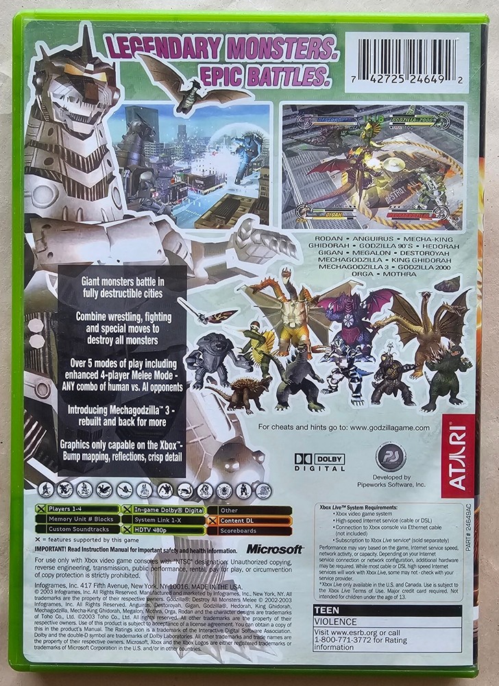 Godzilla: Destroy All Monsters Melee (Original Xbox) Case and Game Only, No Manual. Some Very Lights scratches, plays normally.