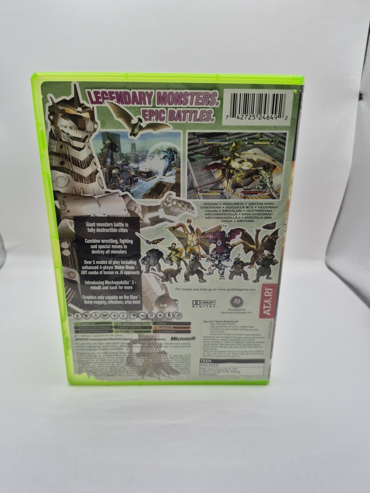 Embark on a monstrous adventure with "Godzilla Destroy All Monsters" for the Microsoft Xbox, a game that brings the classic arcade action to your console. Infogrames has crafted a thrilling experience where you can unleash the king of monsters and his allies on a variety of cities, causing chaos and mayhem in a battle to conquer the world. Rated T for Teen, this game promises intense gameplay and captivating moments for players who enjoy a challenge. With its engaging storyline and interactive controls, it's a must-have for any Xbox enthusiast looking to add a touch of destruction to their game library. Game is authentic and does not include the manual! Game has been professionally resurfaced by an EcoPro 2 refurbashing machine, cleaned, tested and is working! Will ship within 24 hours!