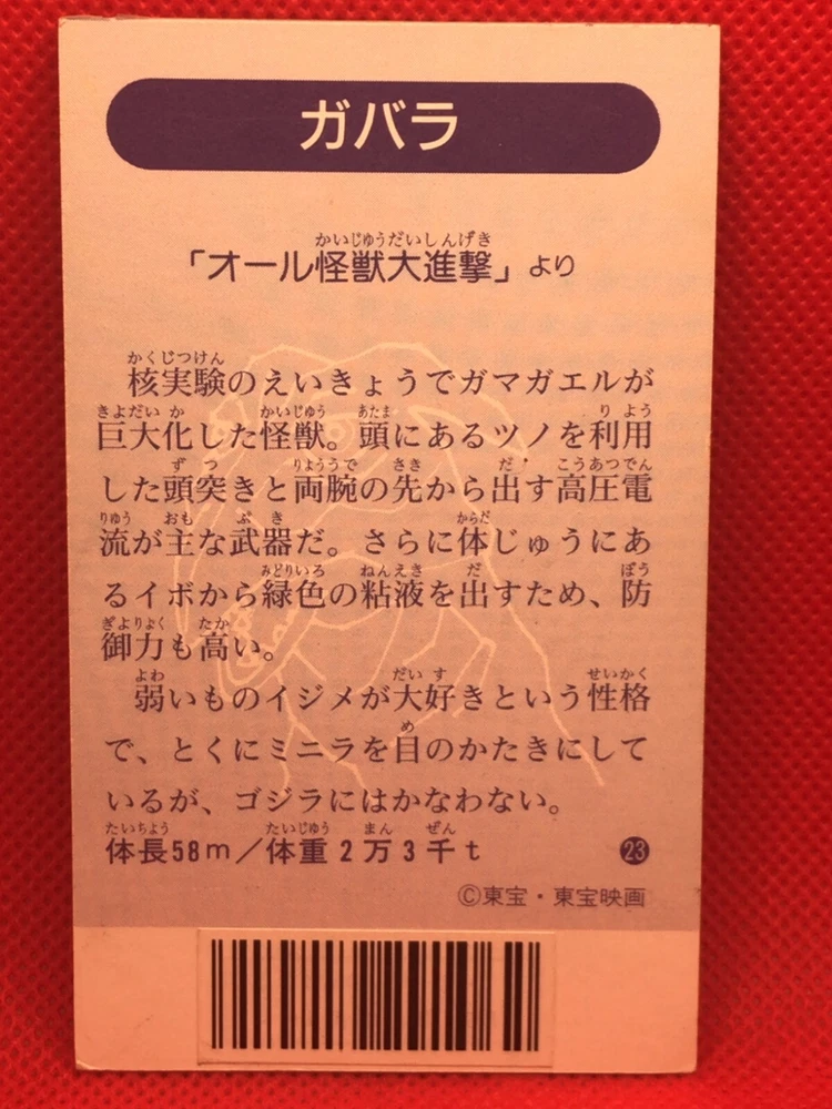 Vintage Godzilla Gabara Barcode Battler Card No.23 Rare TOHO