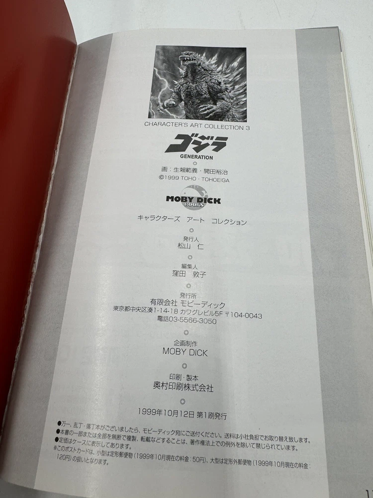 This postcard book showcases the stunning artwork of Noriyoshi Ohrai, featuring illustrations of the iconic Godzilla. Published in Japan in 1999, this vintage booklet is a must-have for any fan of science fiction and horror. The artwork captures the essence of the legendary franchise and is sure to impress collectors. Incomplete missing some pages The postcard book is in used condition and is missing some postcards but has been well-preserved. It contains no signatures and is part of the Godzilla franchise. The brand is Moby Dick, and it was manufactured in Japan. This is a modified item, as it is a booklet of postcards with illustrations. Add this unique piece to your collection and relive the glory of Godzilla. Any questions please ask and donโt forget to check out my other vintage collectibles for combined shipping