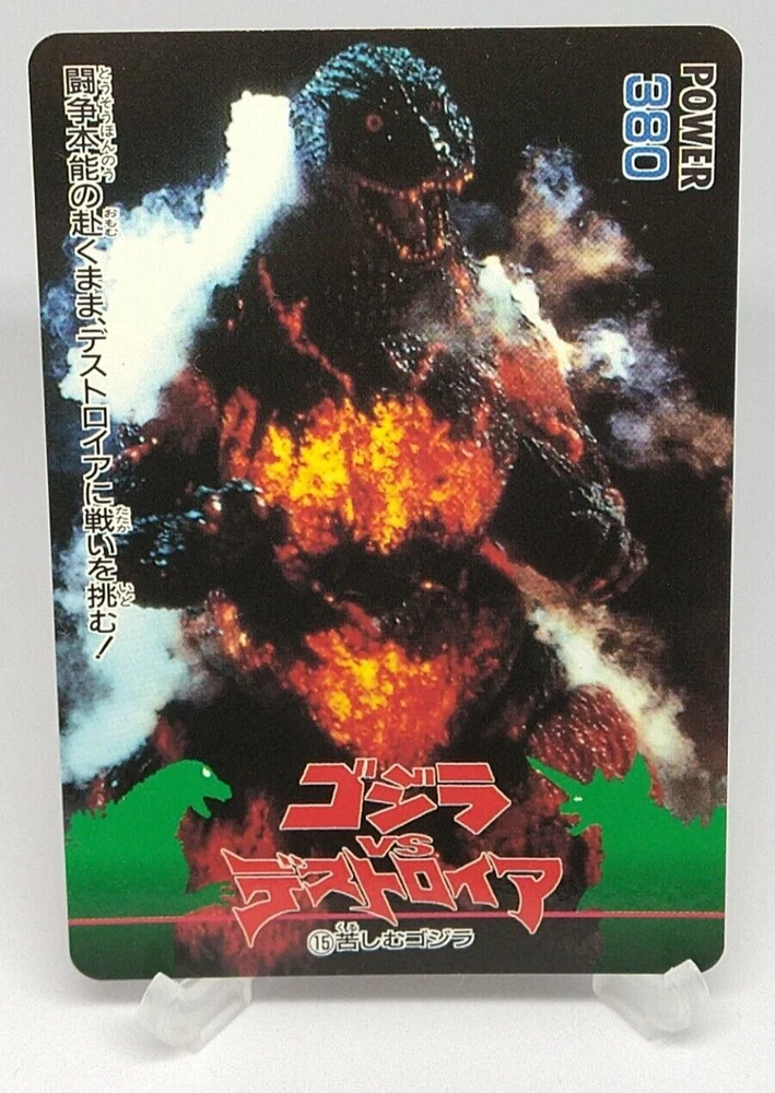 Godzilla Godzilla vs Destoroyah Trading Card No.15 AMADA Japanese 1995 Toho Description Beautiful Please see the picture for the details of damages and dirt or ask us before your purchase. 100% Authentic or Money Back Guaranteed. (Do not worry you are protected by eBay and eBay Managed Payments) See the pictures for more details. If you have any question about the condition, accessories, or anything about the product, please feel free to message us. We are glad to answer all your concerns. Payment Same as ebay payment method. Shipping Economy shipping: Delivery time will be about 11 - 23 days with tracking number. Standard shipping: Delivery time will be about 5 - 10 days with tracking number. Expedited shipping: Delivery time will be about 1 - 4 days with tracking number. Terms of Sale Money back guarantee within 30 days if returned by customer. We would not be able to accept your bid if you; 1) Don't have a PayPal account. 2) Have unpaid items reported. 3) Have a primary shipping address in countries you don't ship to. 4) Have reportedly violated eBay policies. 5) Have a Feedback score lower than the number you specify. International Buyers - Please Note: Import duties, taxes and charges are not included in the item price or shipping charges. These charges are the buyer's responsibility. Please check with your country's customs office to determine what these additional costs will be prior to bidding/buying. These charges are normally collected by the delivering freight (shipping) company or when you pick the item up - do not confuse them for additional shipping charges.