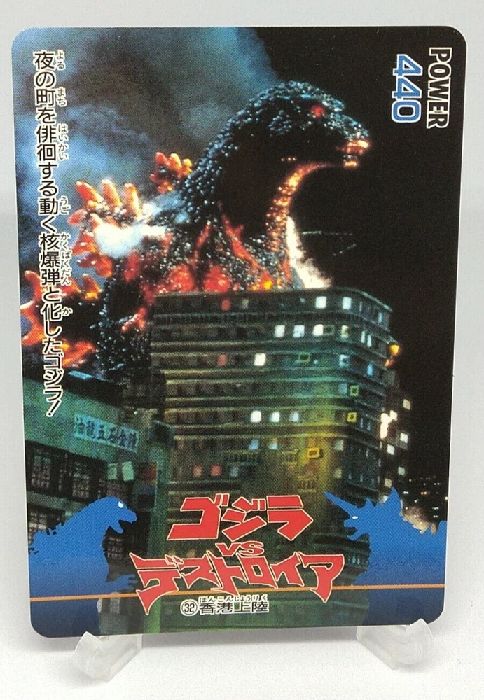 Godzilla Godzilla vs Destoroyah Trading Card No.32 AMADA Japanese 1995 Toho Description Beautiful Please see the picture for the details of damages and dirt or ask us before your purchase. 100% Authentic or Money Back Guaranteed. (Do not worry you are protected by eBay and eBay Managed Payments) See the pictures for more details. If you have any question about the condition, accessories, or anything about the product, please feel free to message us. We are glad to answer all your concerns. Payment Same as ebay payment method. Shipping Economy shipping: Delivery time will be about 11 - 23 days with tracking number. Standard shipping: Delivery time will be about 5 - 10 days with tracking number. Expedited shipping: Delivery time will be about 1 - 4 days with tracking number. Terms of Sale Money back guarantee within 30 days if returned by customer. We would not be able to accept your bid if you; 1) Don't have a PayPal account. 2) Have unpaid items reported. 3) Have a primary shipping address in countries you don't ship to. 4) Have reportedly violated eBay policies. 5) Have a Feedback score lower than the number you specify. International Buyers - Please Note: Import duties, taxes and charges are not included in the item price or shipping charges. These charges are the buyer's responsibility. Please check with your country's customs office to determine what these additional costs will be prior to bidding/buying. These charges are normally collected by the delivering freight (shipping) company or when you pick the item up - do not confuse them for additional shipping charges.