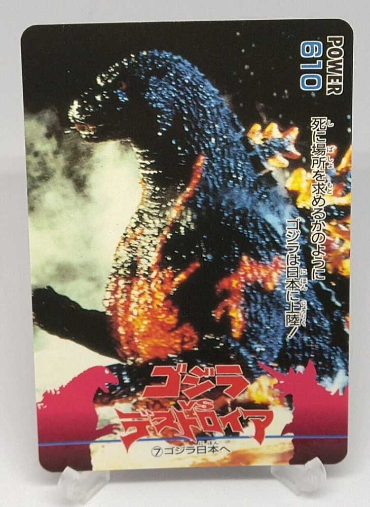 Godzilla Godzilla vs Destoroyah Trading Card No.7 AMADA Japanese 1995 Toho Description Beautiful Please see the picture for the details of damages and dirt or ask us before your purchase. 100% Authentic or Money Back Guaranteed. (Do not worry you are protected by eBay and eBay Managed Payments) See the pictures for more details. If you have any question about the condition, accessories, or anything about the product, please feel free to message us. We are glad to answer all your concerns. Payment Same as ebay payment method. Shipping Economy shipping: Delivery time will be about 11 - 23 days with tracking number. Standard shipping: Delivery time will be about 5 - 10 days with tracking number. Expedited shipping: Delivery time will be about 1 - 4 days with tracking number. Terms of Sale Money back guarantee within 30 days if returned by customer. We would not be able to accept your bid if you; 1) Don't have a PayPal account. 2) Have unpaid items reported. 3) Have a primary shipping address in countries you don't ship to. 4) Have reportedly violated eBay policies. 5) Have a Feedback score lower than the number you specify. International Buyers - Please Note: Import duties, taxes and charges are not included in the item price or shipping charges. These charges are the buyer's responsibility. Please check with your country's customs office to determine what these additional costs will be prior to bidding/buying. These charges are normally collected by the delivering freight (shipping) company or when you pick the item up - do not confuse them for additional shipping charges.