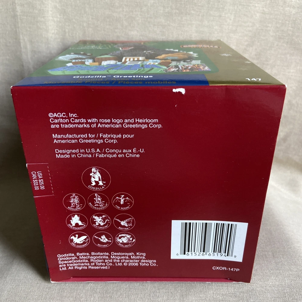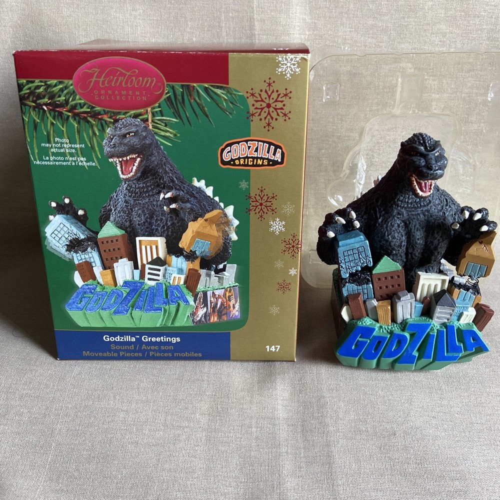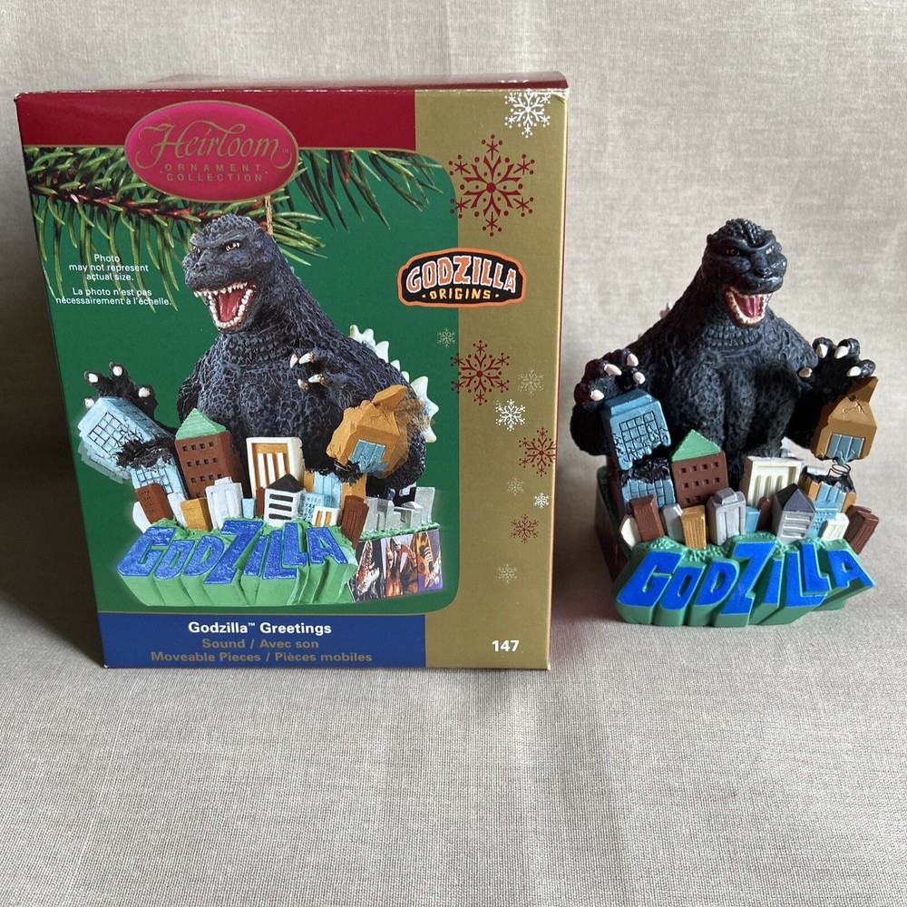 Carlton Cards: An American Greeting Company Heirloom Ornament Collection: Godzilla Origins # 147 "Godzilla Greetings" (Sound & Moveable Pieces) TESTED. Working. Requires 3x Microcell Batteries. Batteries NOT included. MN: CXOR-147P. Vintage 2006. Toho Licensed. Kaiju. Please view the provided photos and ask any questions.