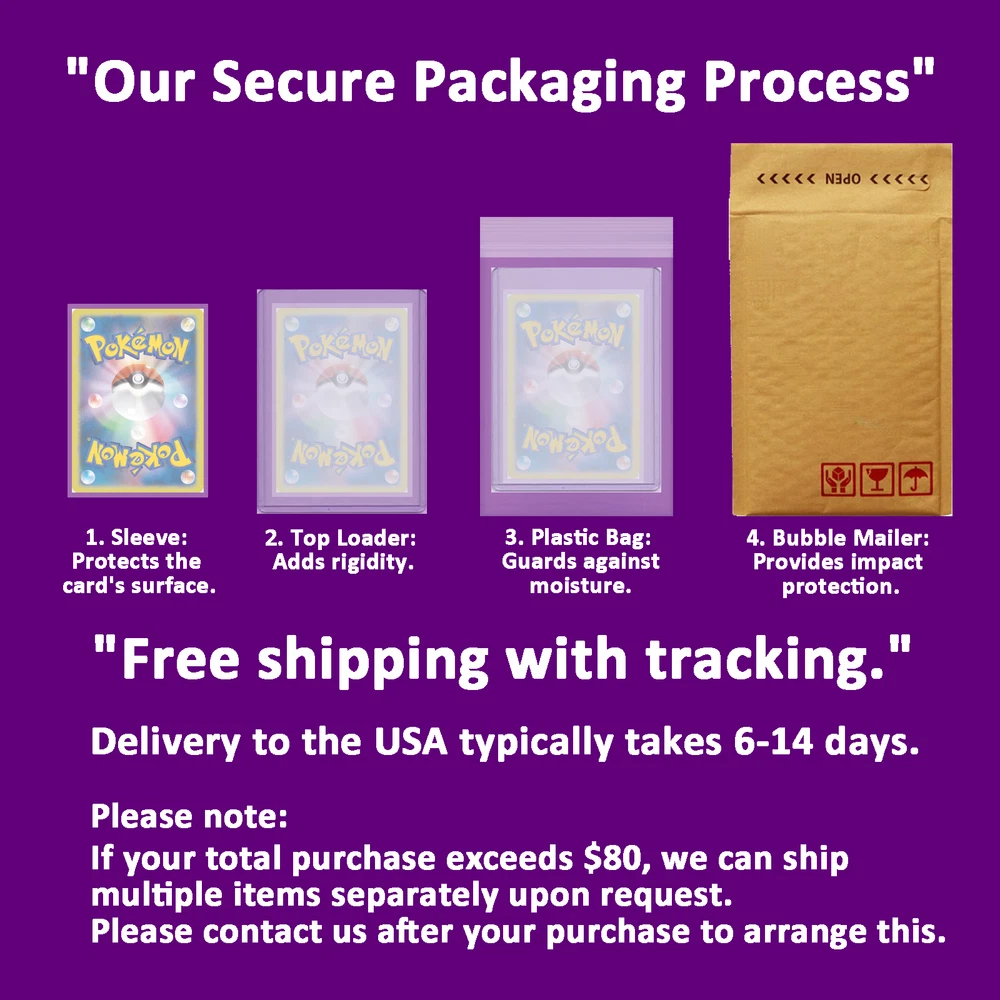 Product Description Condition Used Please refer to the photos for the item's condition. Payment Methods Credit Card, Debit Card, Apple Pay, Google Pay, PayPal, PayPal Credit Packaging The card will be securely packaged in a sleeve, top loader, plastic bag, and cushioned envelope. Handling Time 1–2 business days Shipping Free standard shipping via Japan Post with tracking; estimated delivery to the USA is approximately 6–14 days. Return Policy We offer a 60-day return guarantee. If there are any issues with your item, please contact us first, and we will do our best to resolve the problem.
