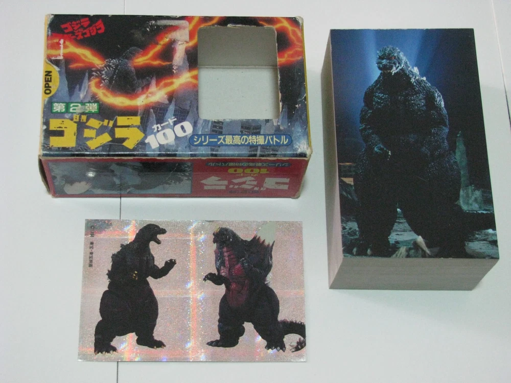 Quality Mint Collectible Cards and Coins. Rare Godzilla 1995 Amada 100 Card set plus rare hologram sticker . Total of (100 Cards Plus silver hologram) As pictured rare set released by JPP Amada Japan 1995. (This set has not been separated and still in as new factory mint condition as pictured.) The outer box is in good condition but above average. This item is in excellent condition. Packaged well to protect your collectible during the travel to you. Enjoy, Happy Collecting.