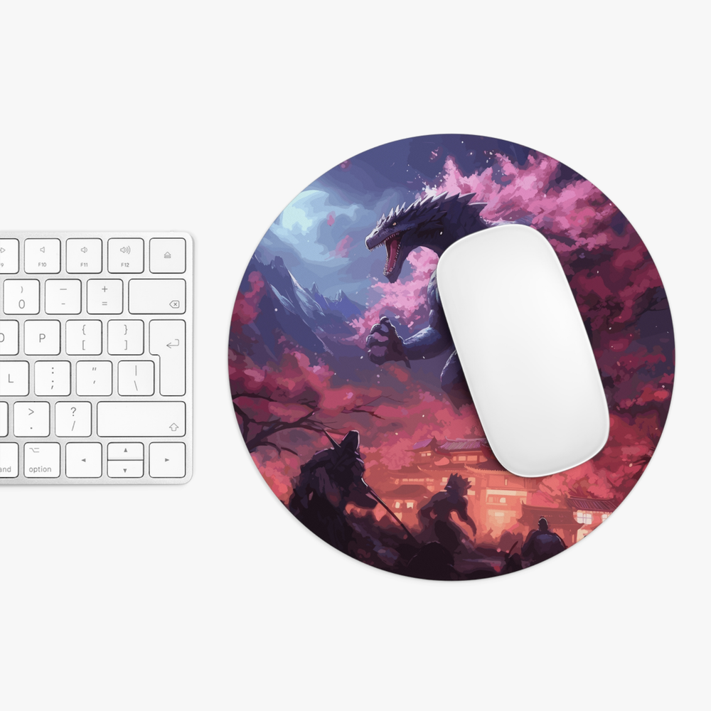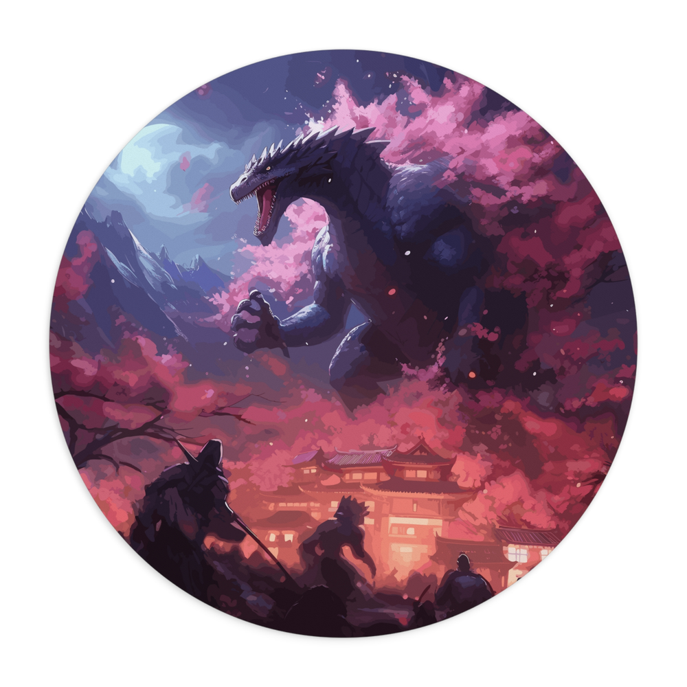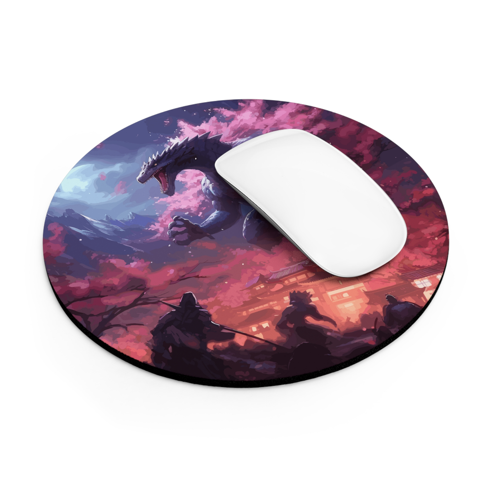 Godzilla Japan Mousepad 7.5 Inch Circle Japanese Kaiju Blossom Design