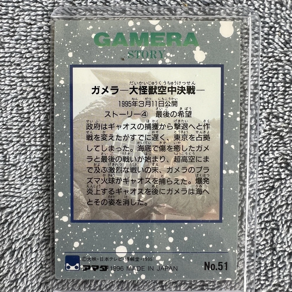 This Godzilla trading card lot is a fantastic find for fans! The 1996 Japanese cards feature amazing artwork of classic monsters like Gamera and Battra, all in mint condition with protective cases. A must-have for any kaiju collector—authentic, nostalgic, and visually striking. Highly recommended!