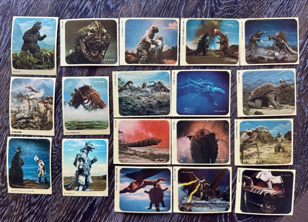 Godzilla Japanese Morinaga TOHO EIZO 17 Sticker Card Set 🔥 VINTAGE Movie Images 🔥 None for sale Very rare and in awesome mint condition. US SELLER Most