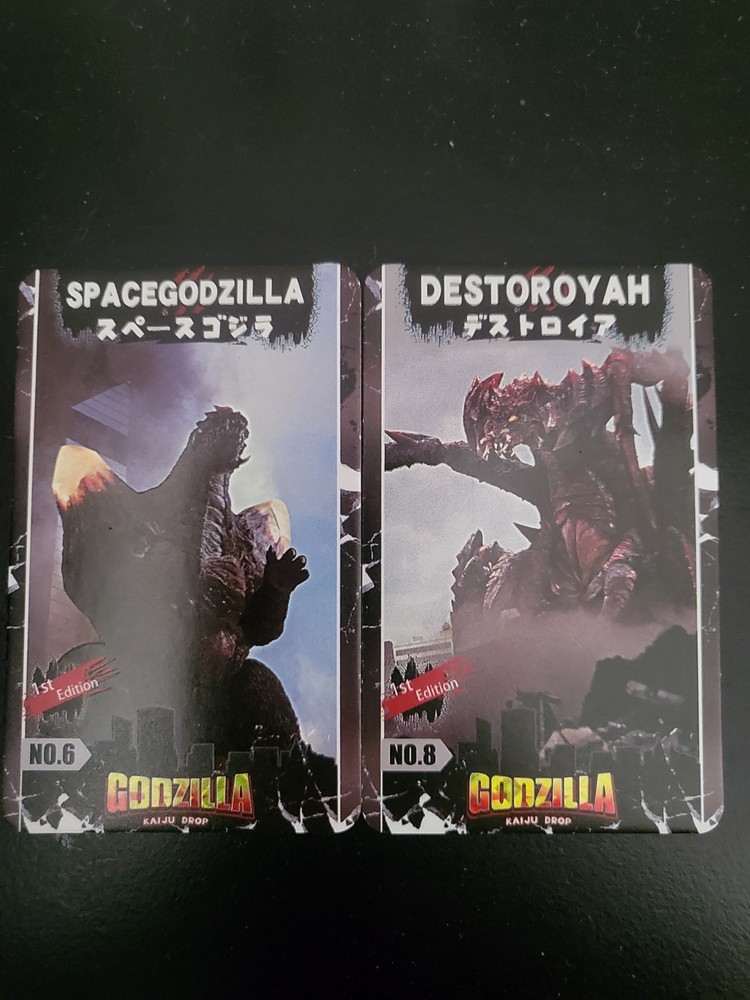 Space Godzilla & DESTOROYAH cards from the Kaiju Drop game at Round 1. In excellent condition