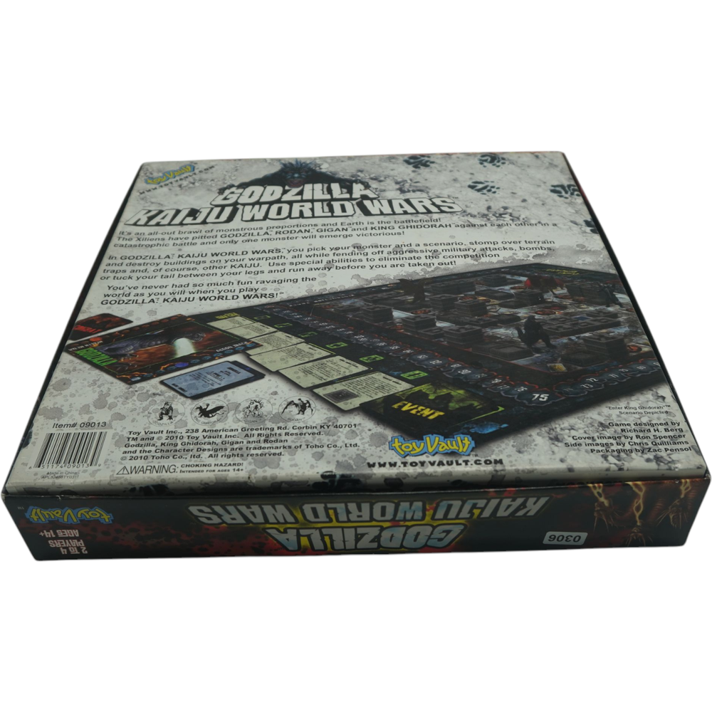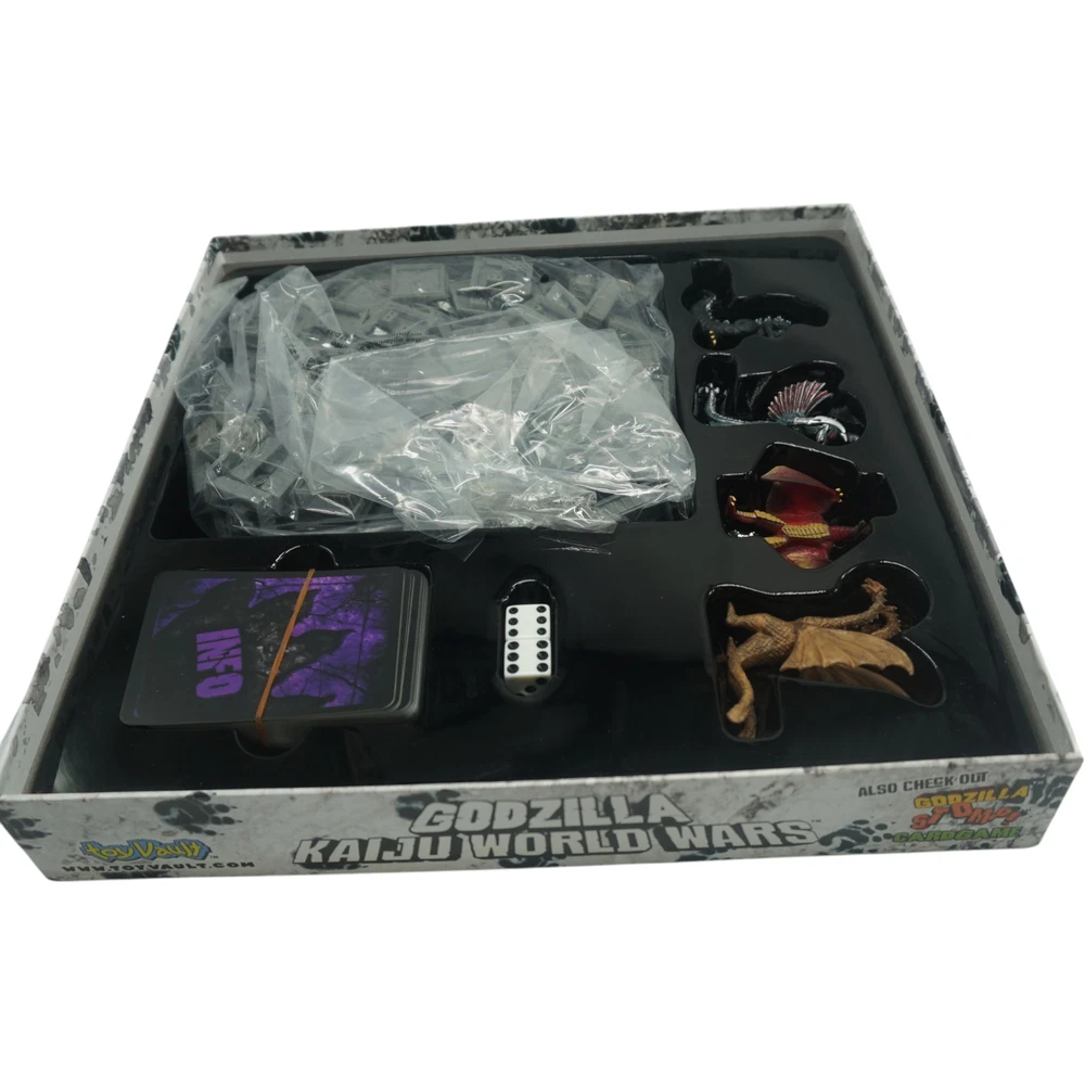 Condition: Very good condition overall. Not checked for completeness. Unleash colossal chaos upon the tabletop with the Godzilla Kaiju World Wars Board Game from Toy Vault, released in 2010! Prepare for an epic showdown of monstrous proportions as iconic Kaiju clash in a city-smashing, building-stomping battle for supremacy. In this thrilling game, you take control of legendary creatures like Godzilla, Mothra, King Ghidorah, and more, each with unique abilities and devastating attacks. Strategically maneuver your Kaiju across the modular game board, representing a sprawling cityscape ripe for destruction. Unleash powerful atomic breath, razor-sharp wings, and gravity beams to crush your opponents and level skyscrapers in your wake. The game features detailed Kaiju miniatures that bring these titans to life on your table. Engage in tactical combat, utilizing your Kaiju's special powers and exploiting weaknesses to gain the upper hand. The modular board ensures that every game offers a different layout and strategic challenge, keeping the monster mayhem fresh and exciting. Godzilla Kaiju World Wars is a fantastic game for fans of giant monster movies and strategic tabletop battles alike. Relive the thrill of classic Kaiju clashes and determine who will reign supreme as the ultimate King of the Monsters! Get ready for a game filled with earth-shattering roars, collapsing buildings, and unforgettable monster-on-monster action!