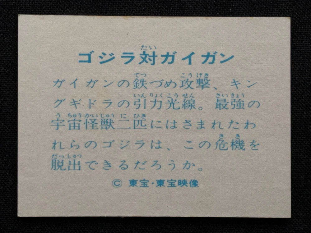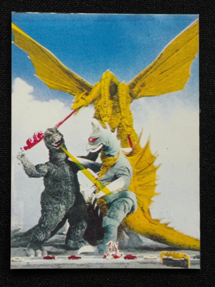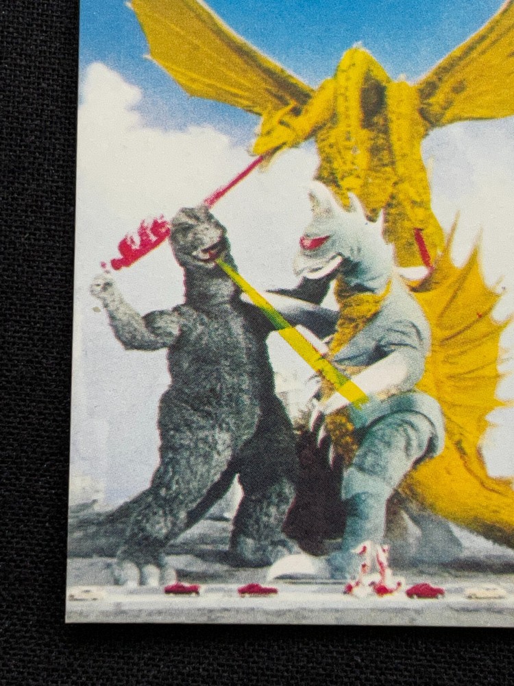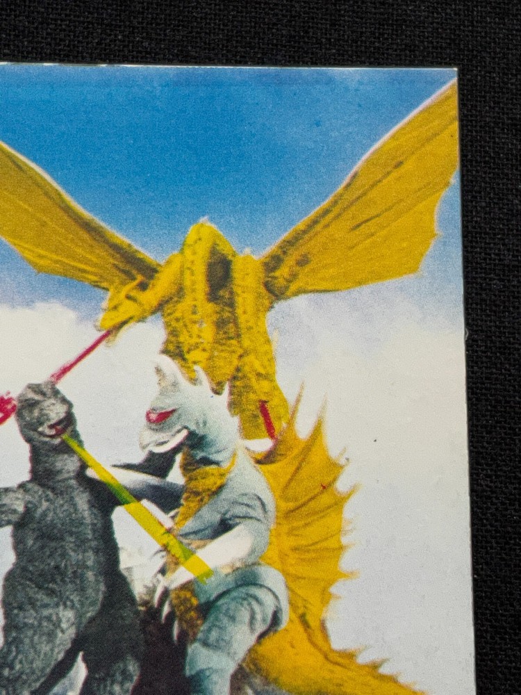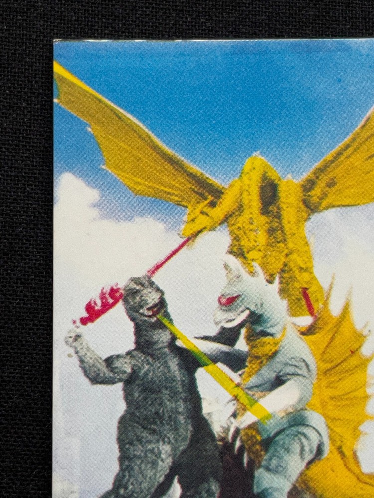 Vintage TOHO TOEI Japanese Menko Mini Card Featuring Godzilla King Ghidora Gigan 2.6x1.9 Rare Collectible