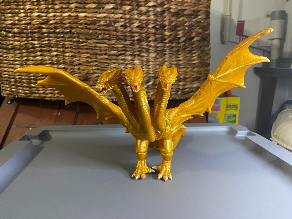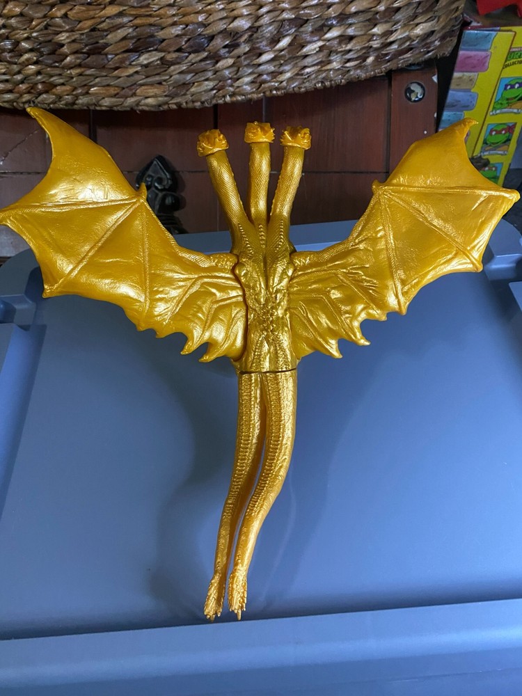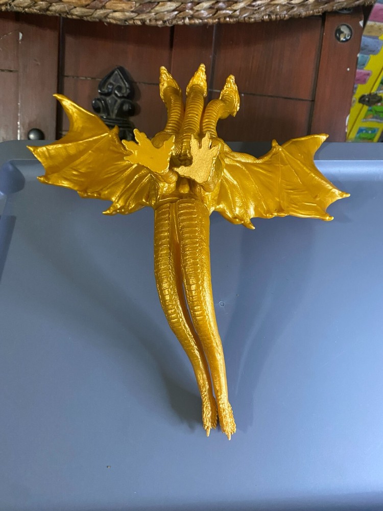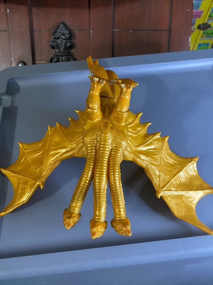 King Ghidorah action figure played with condition. some minor play wear will look awesome displayed on a shelf ! approx 7.5" tall approx 12" long head can be posed priced to sell please see pictures please ask questions