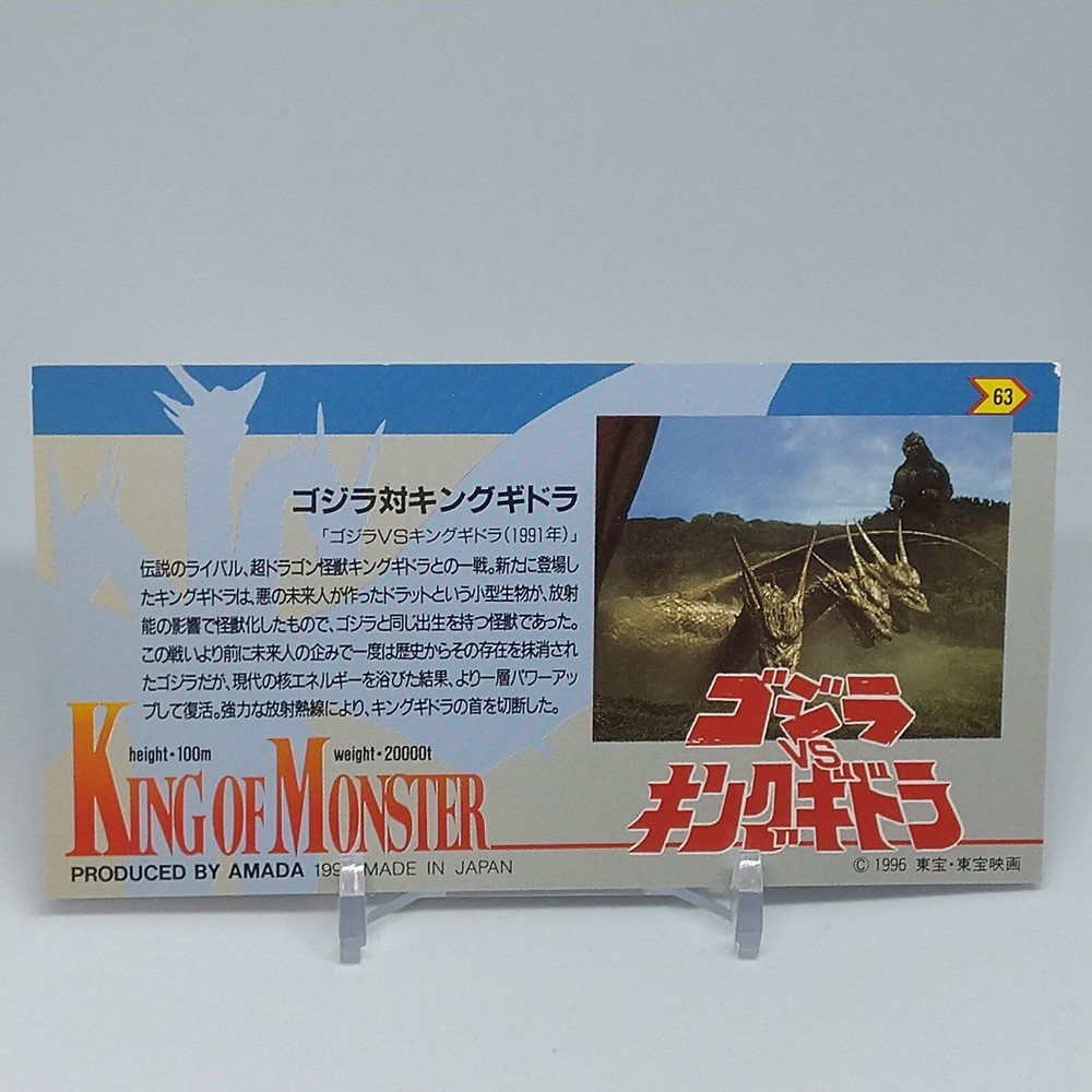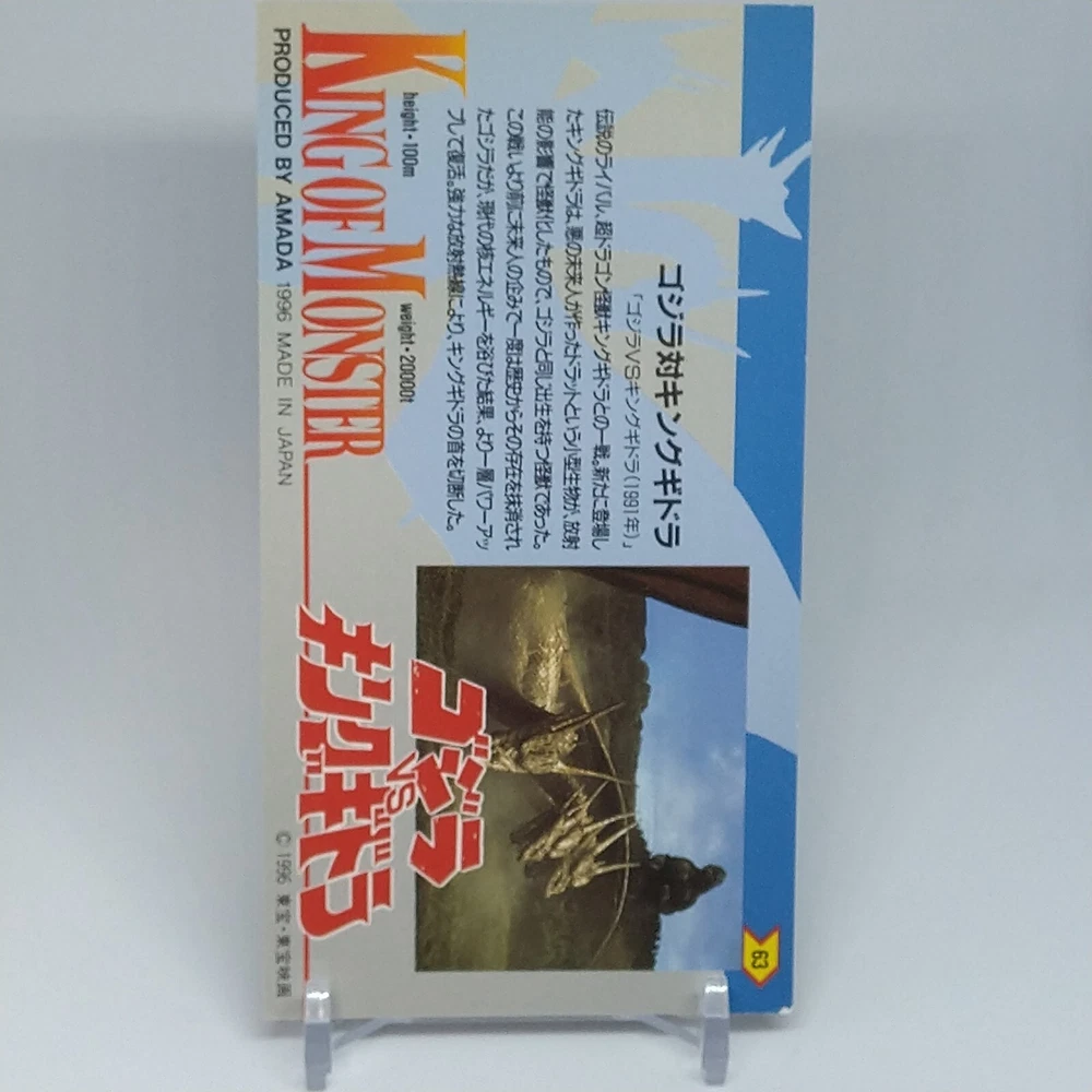 Godzilla King Ghidorah King of Monster Amada Wide Collection Card No.63 1996 Description Please see the picture for the details of damages and dirt or ask us before your purchase. 100% Authentic or Money Back Guaranteed. (Do not worry you are protected by eBay and eBay Managed Payments) See the pictures for more details. If you have any question about the condition, accessories, or anything about the product, please feel free to message us. We are glad to answer all your concerns. Payment Same as ebay payment method. Shipping Economy shipping: Delivery time will be about 11 - 23 days. Standard shipping: Delivery time will be about 5 - 10 days. Expedited shipping: Delivery time will be about 1 - 4 days. Terms of Sale Money back guarantee within 30 days if returned by customer. We would not be able to accept your bid if you; 1) Don't have a PayPal account. 2) Have unpaid items reported. 3) Have a primary shipping address in countries you don't ship to. 4) Have reportedly violated eBay policies. 5) Have a Feedback score lower than the number you specify. International Buyers - Please Note: Import duties, taxes and charges are not included in the item price or shipping charges. These charges are the buyer's responsibility. Please check with your country's customs office to determine what these additional costs will be prior to bidding/buying. These charges are normally collected by the delivering freight (shipping) company or when you pick the item up - do not confuse them for additional shipping charges.